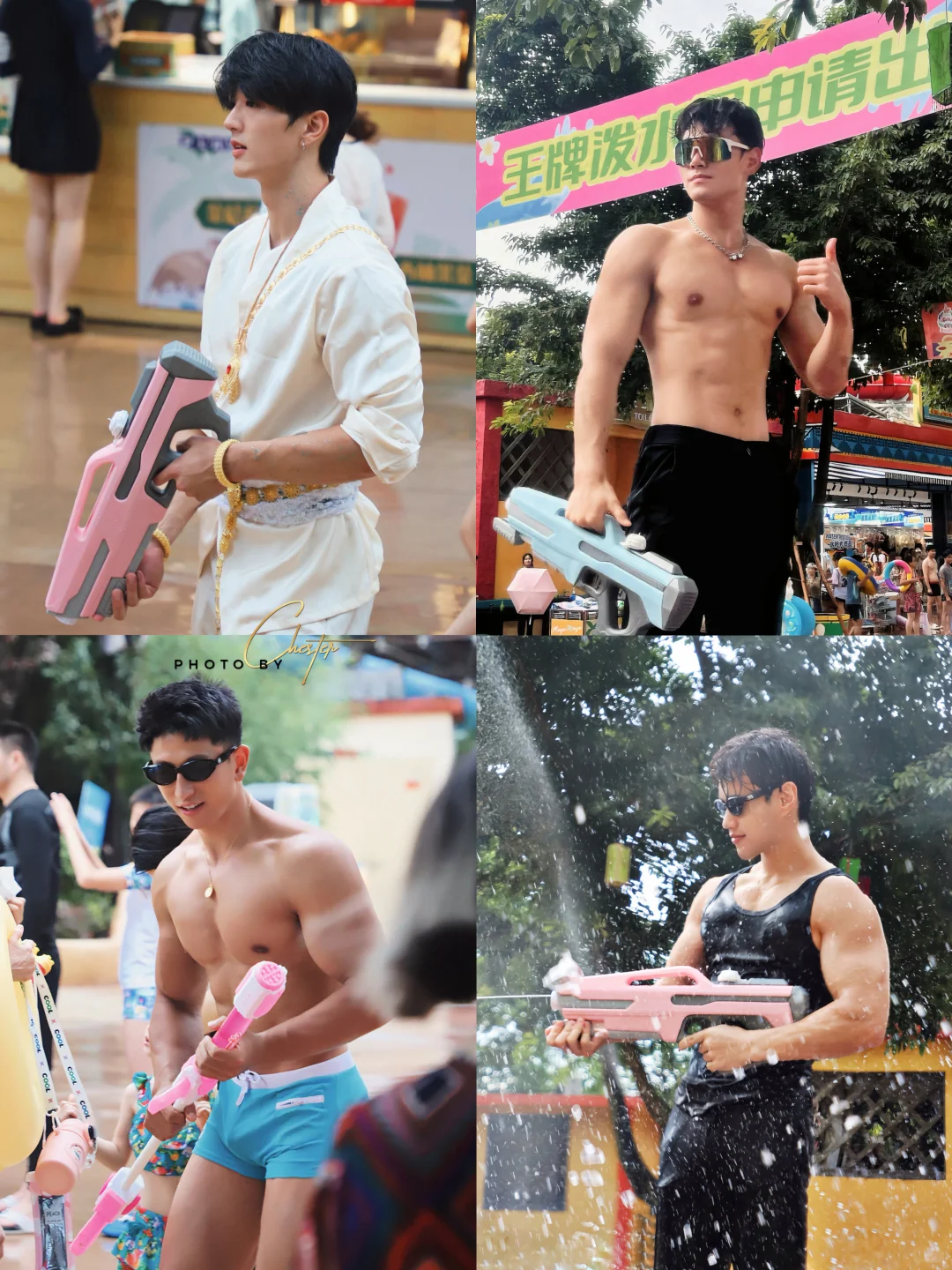 这泼水节是泰式浪漫还是肌肉秀?追打肌肉男,是爽翻还是有点儿尴尬呢? XD