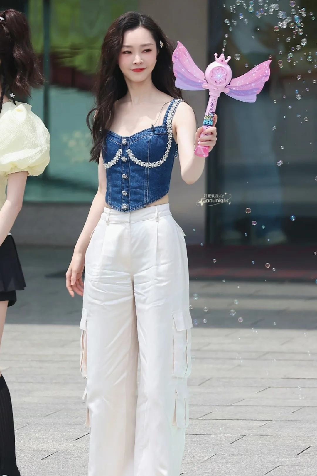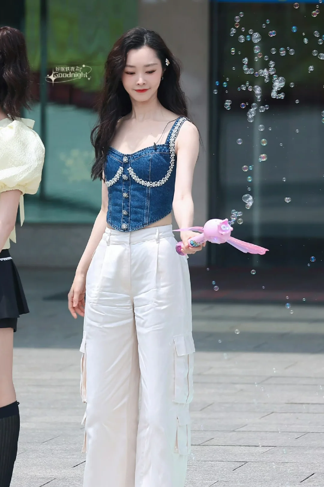 刘亦菲这一身衣服太丑了,用花挡住了才觉得好一点,全靠脸撑着