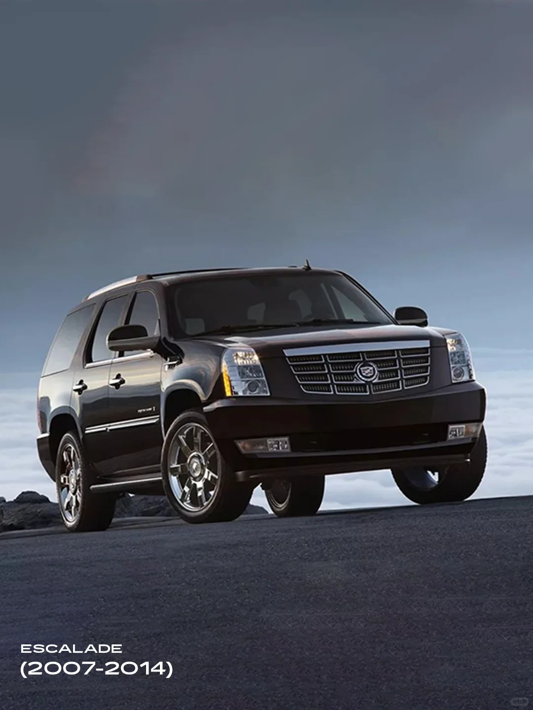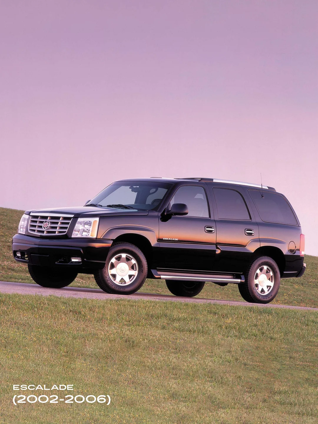 2002年上市的凯雷德,基于GMT800平台全新打造。分为5.05米标准版和5.65米车长的ESV加长版。这一代凯雷德分为后驱和四驱。顶配四驱车型搭配6.0L LQ9 HO Vortec V8发动机,后驱(可选配四驱)车型搭配5.3L LM7 Vortec V8发动机。凯雷德从这代开始成为好莱坞明星、美国富豪和政客的座驾,也开始成为FBI的配车。