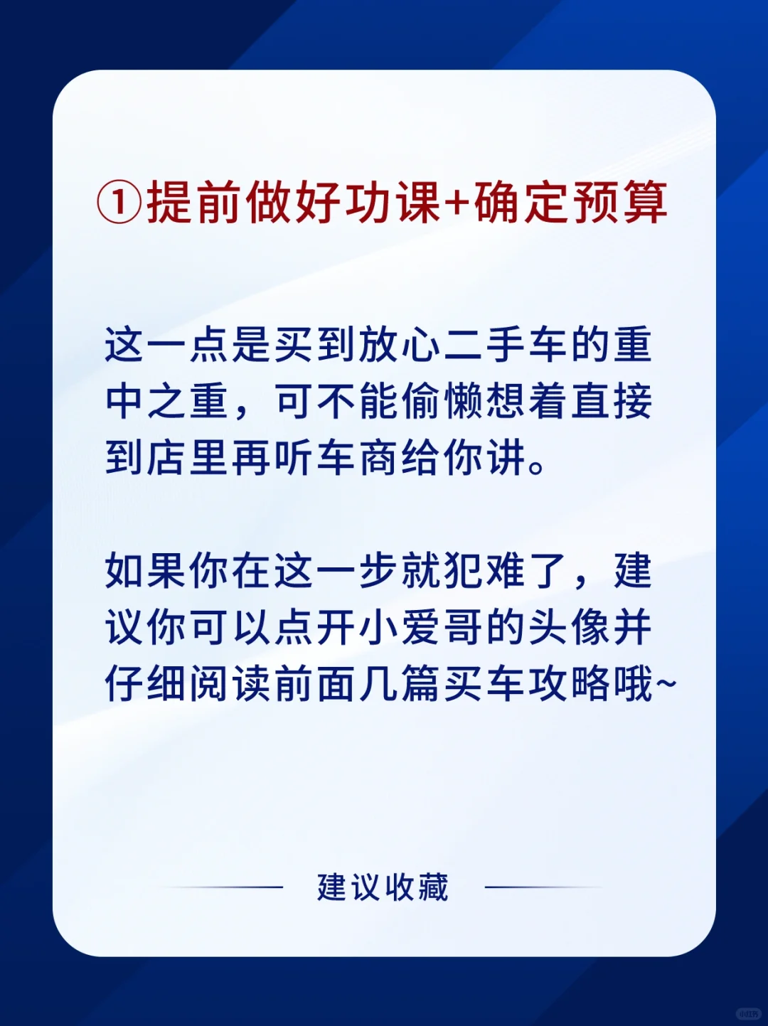 我打赌除了内行人外,99.9999%的朋友们都不清楚买二手车的正规流程到底是什么[满月R][满月R][满月R] 网上很多帖子都只教了你们如何挑选车,那后面的步骤又是什么呢[黑薯问号R]所以如果今天这篇笔记你看进去并学会了,那么恭喜你,你已经超过大多数人,买二手车指定不怕因为某个环节出错被坑[蹲R][蹲R][蹲R]