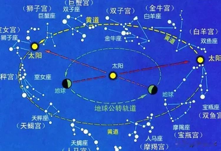 黄道:地球上的人看太阳于一年内在恒星之间所走的视路径