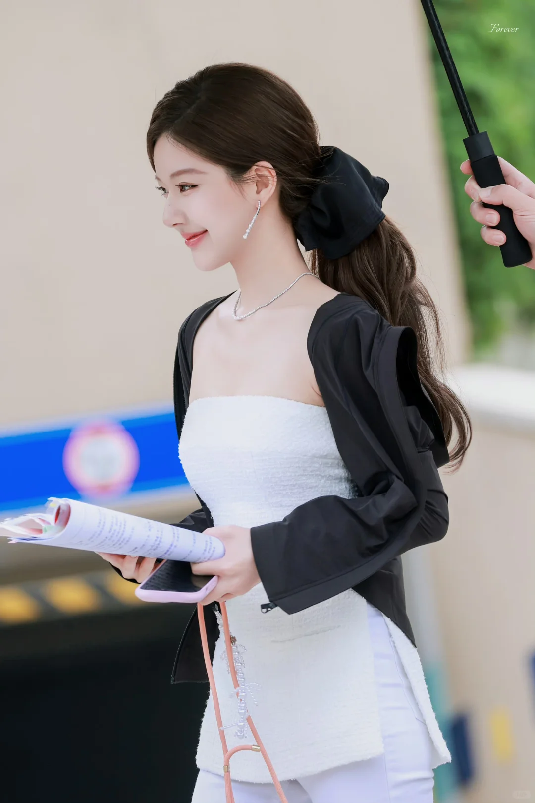 许妍今日造型!黑白搭配法式风拉满🤍🖤