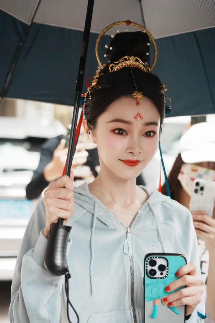 宋轶今日《与晋长安》上班路透,妆造超美😍