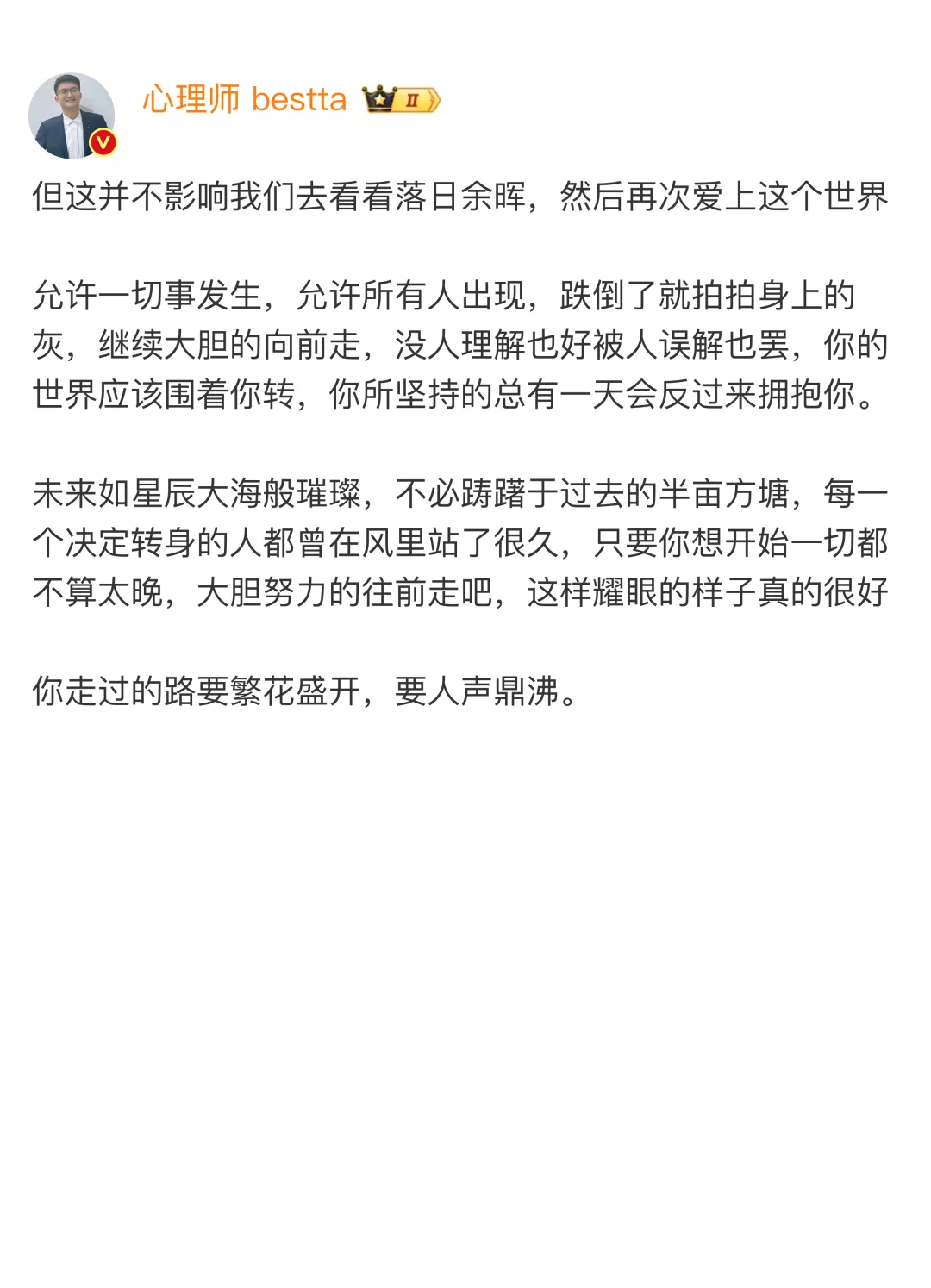 你走过的路要繁花盛开,要人声鼎沸。