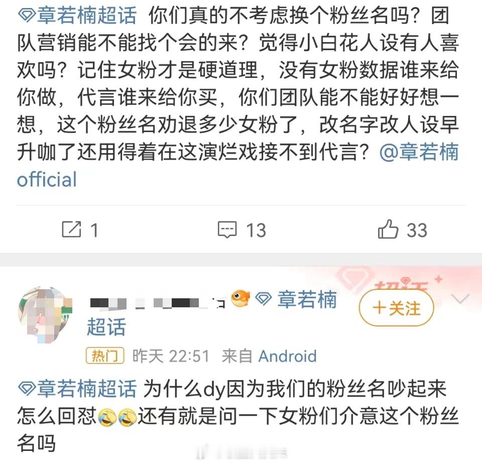 章若楠线下见面会男粉的疯狂行为引争议!粉丝们说章若楠的粉丝名叫楠朋友,这就已经拒绝了很多女粉了,男粉数据不做代言不买,线下到现在连美图都没出来,姐姐考虑换个粉丝名吧[允悲][允悲][允悲][允悲]粉丝们目前建议的粉丝名小楠瓜或者楠瓜派都很好听啊,又很可爱,可以吸引很多女粉,也符合章若楠的性格和形象啊[哇][哇][哇]