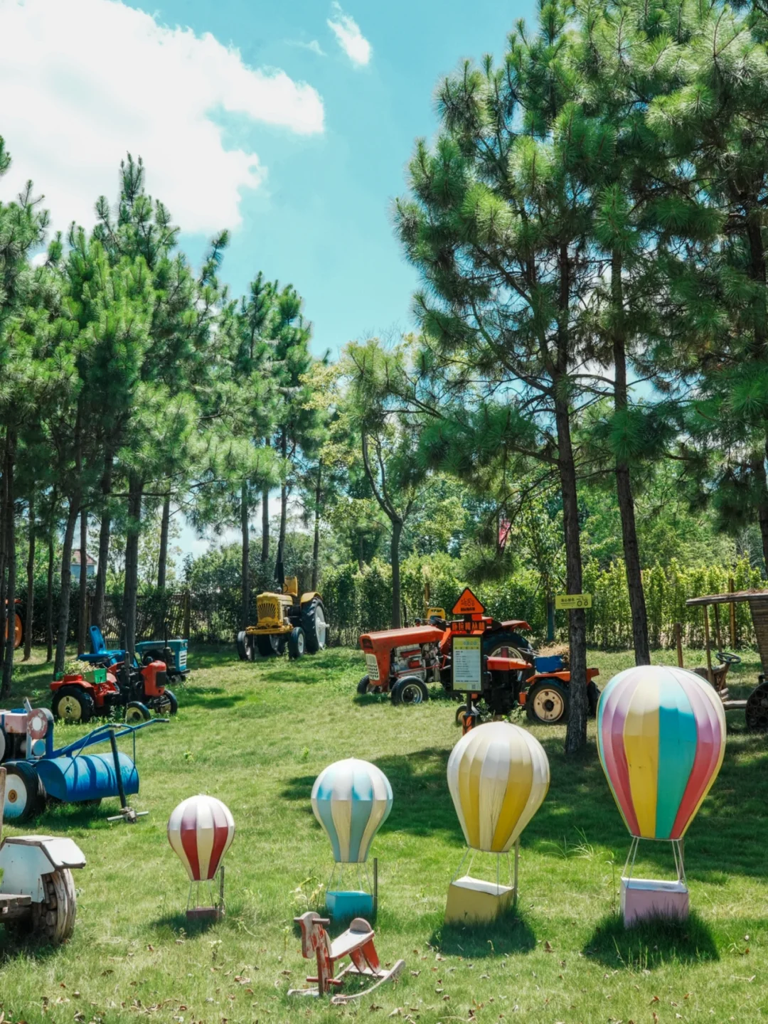 大片的稻田旁边,有这样一座新奇的游乐园,里面有着各式各样的拖拉机、滑梯、秋千,带上孩子可以在这里玩上一整天