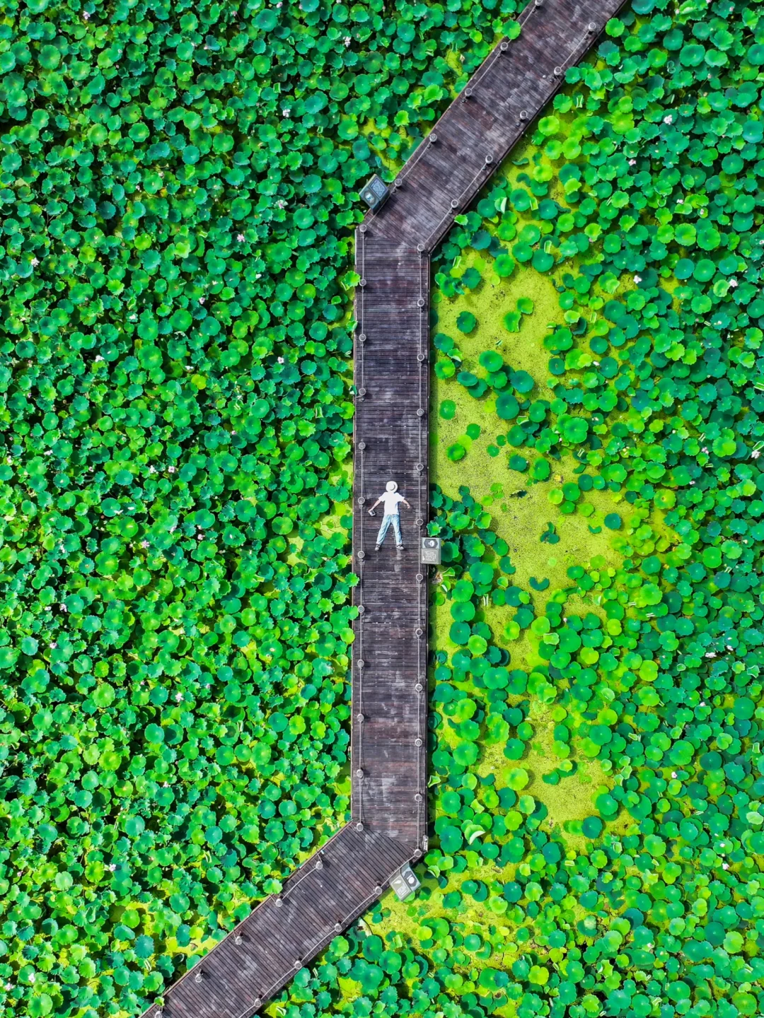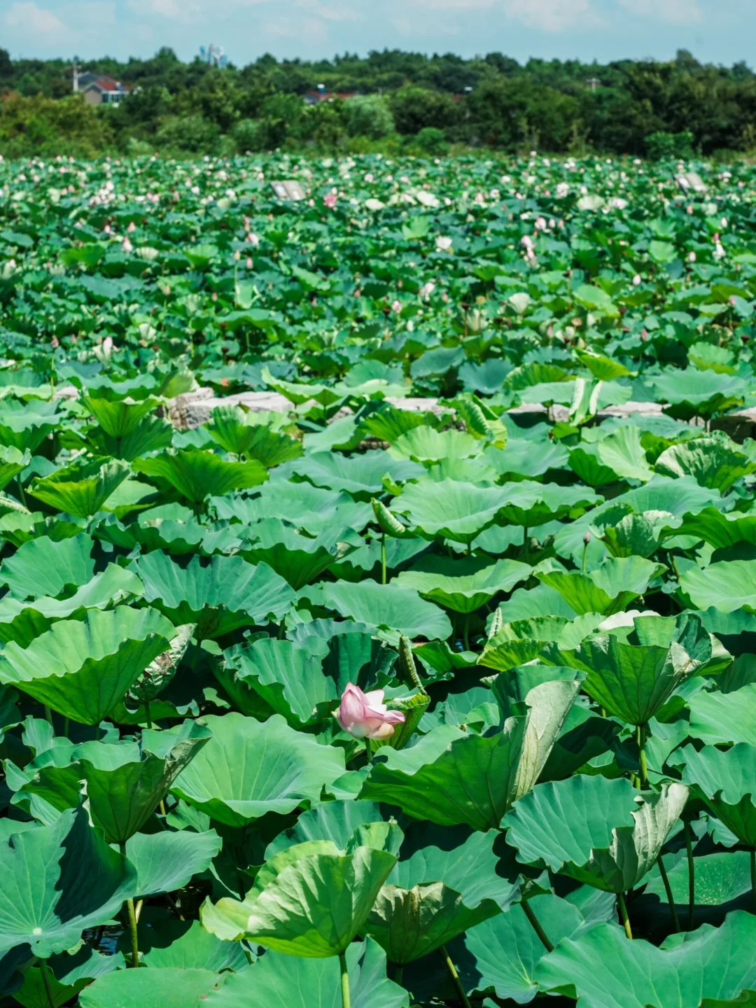 夏天,一大片的荷花怒放,湖里还有各种各样的装饰,拍照很出片