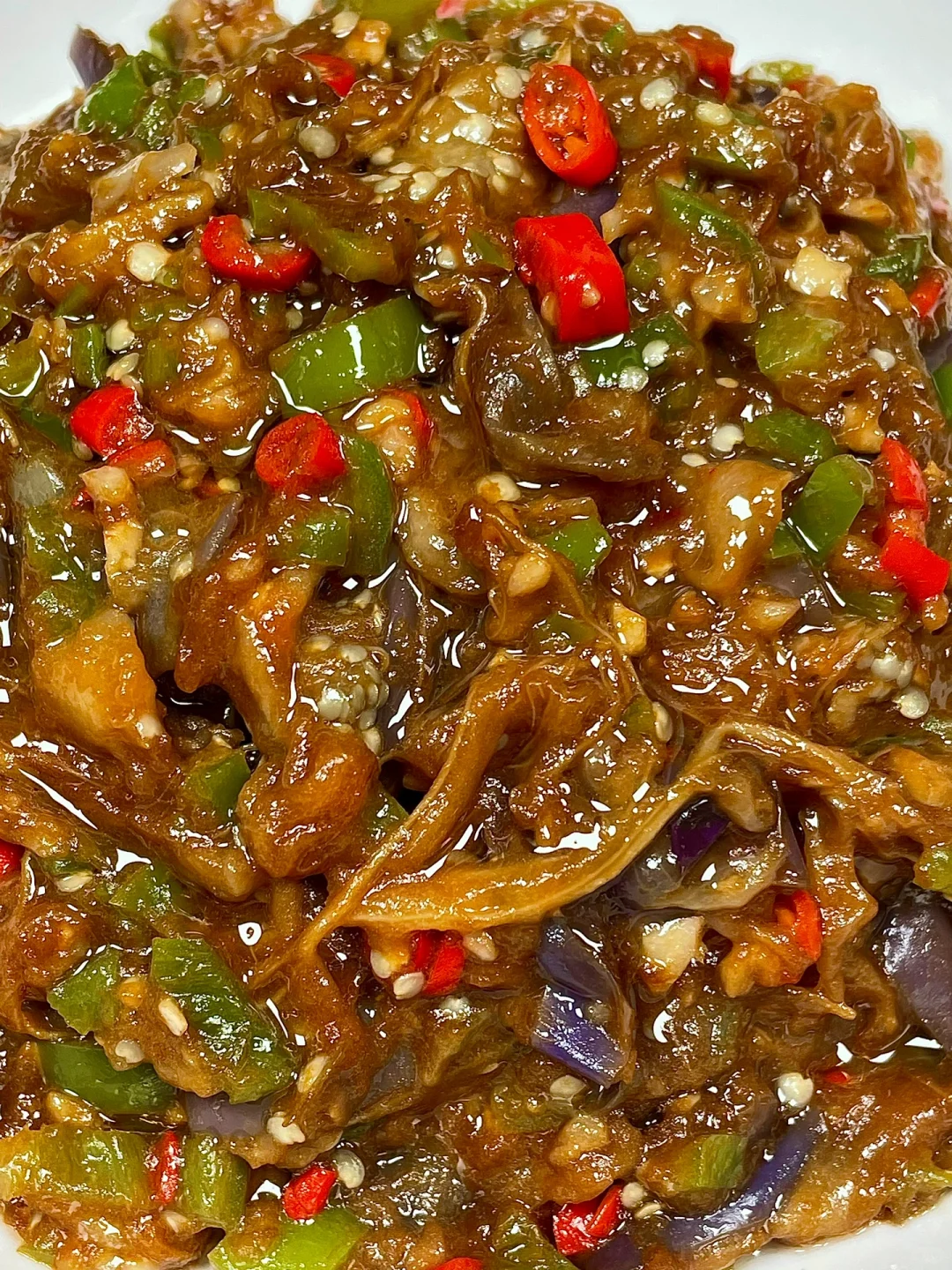 一口惊艳的香辣茄子!一出锅就炫不停,巨好吃[哭惹R] 茄子软糯烂糊,香香辣辣,配上米饭一整个香住了!巨香巨好吃!就这菜能炫两大碗🍚,求你们一定要试试!! [向右R]食材:茄子➕青红椒 [向右R]做法:如图所示!
