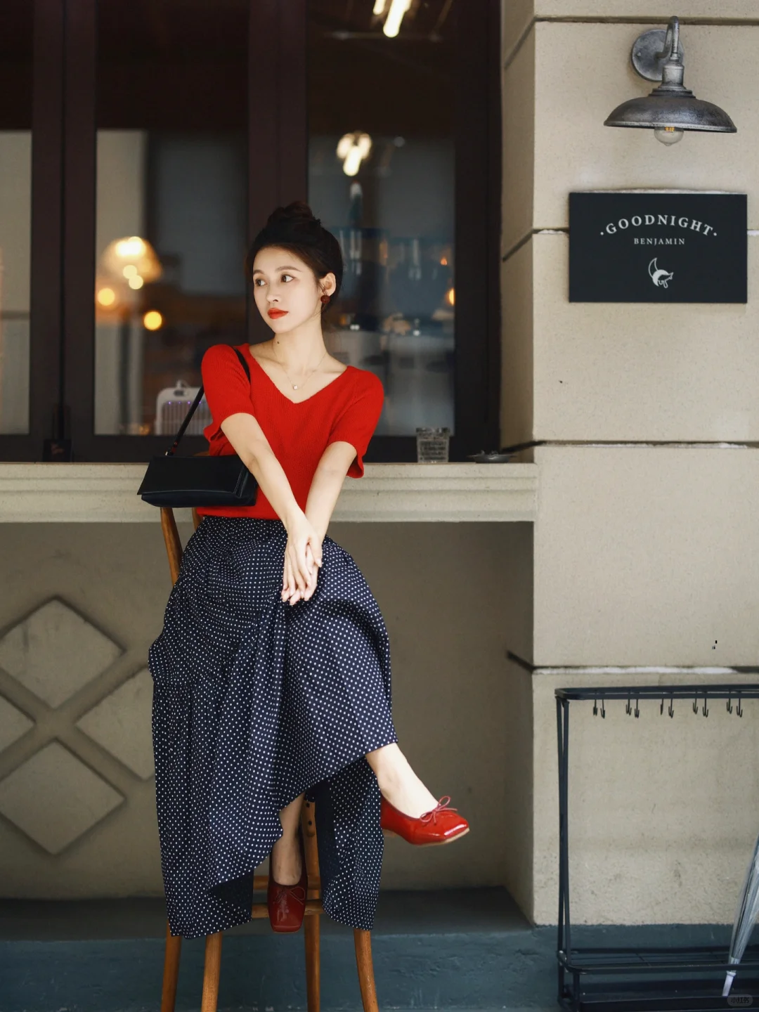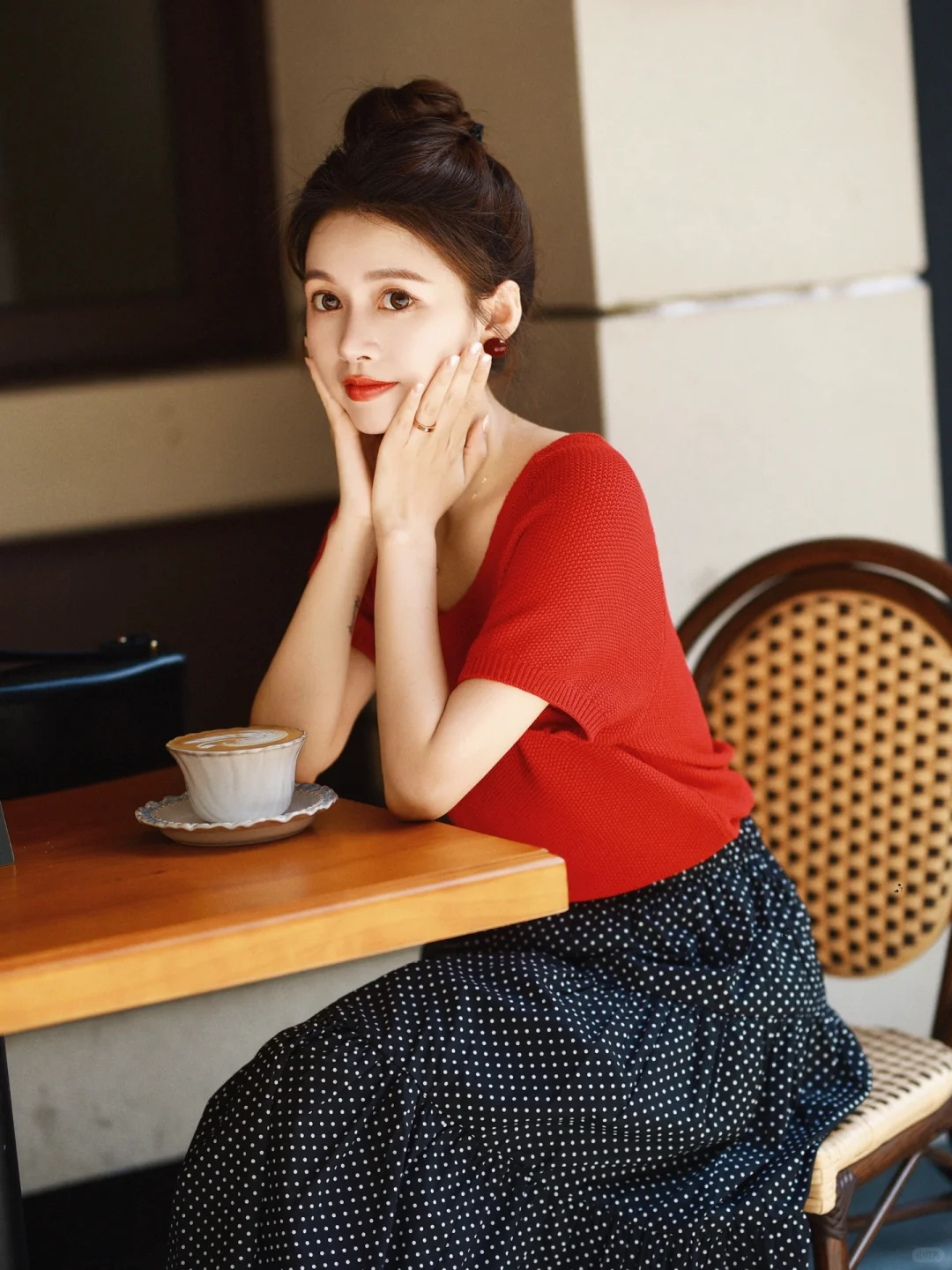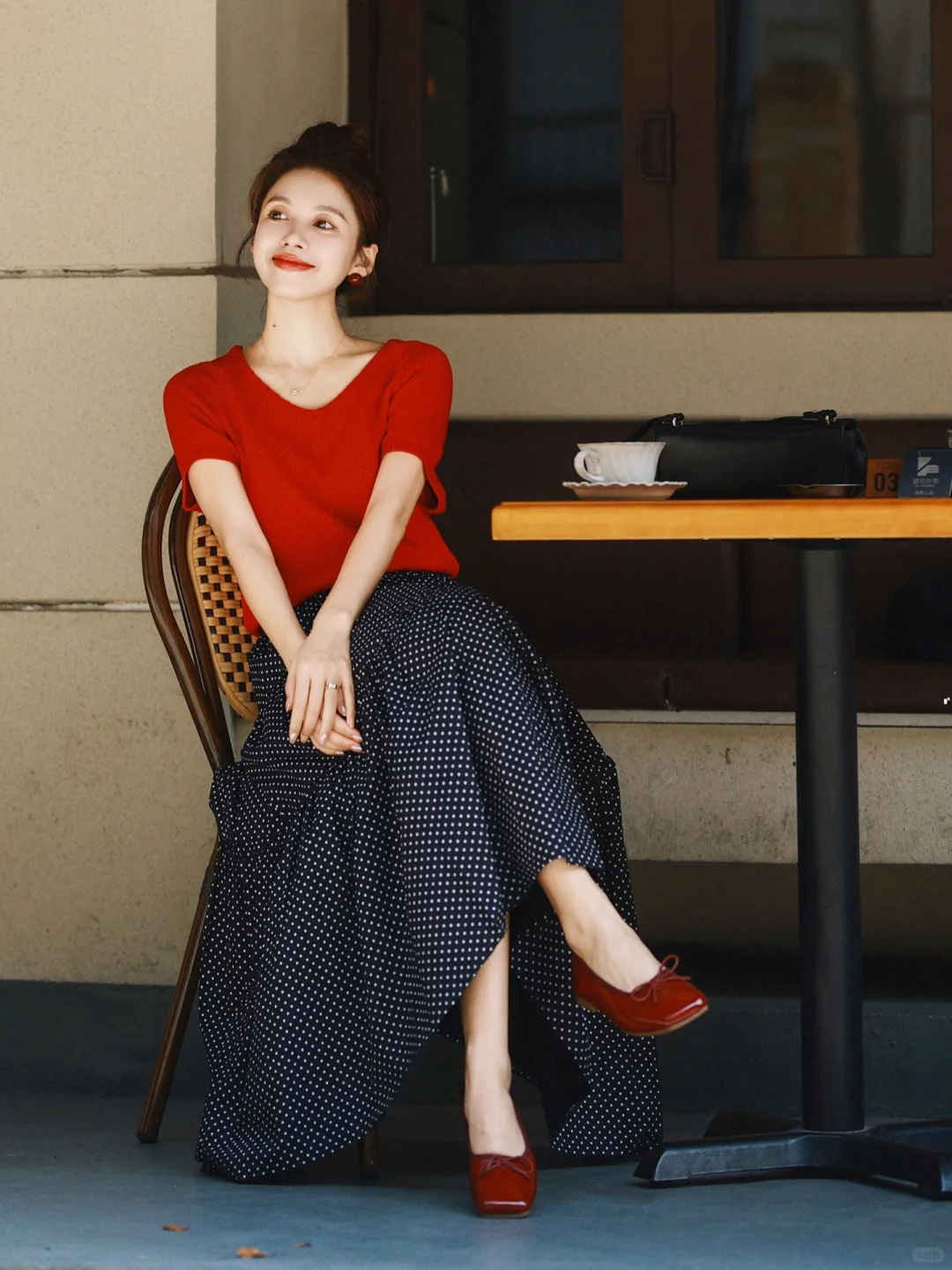 正红配波点,复古不是一点点!街拍就是能把时尚穿出历史的味道,美得穿越了时光,赞