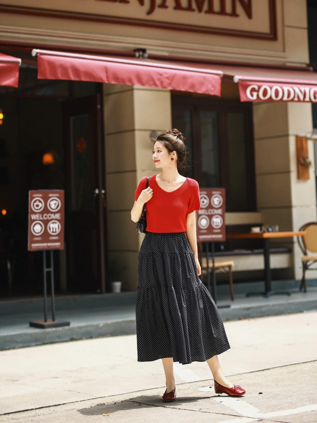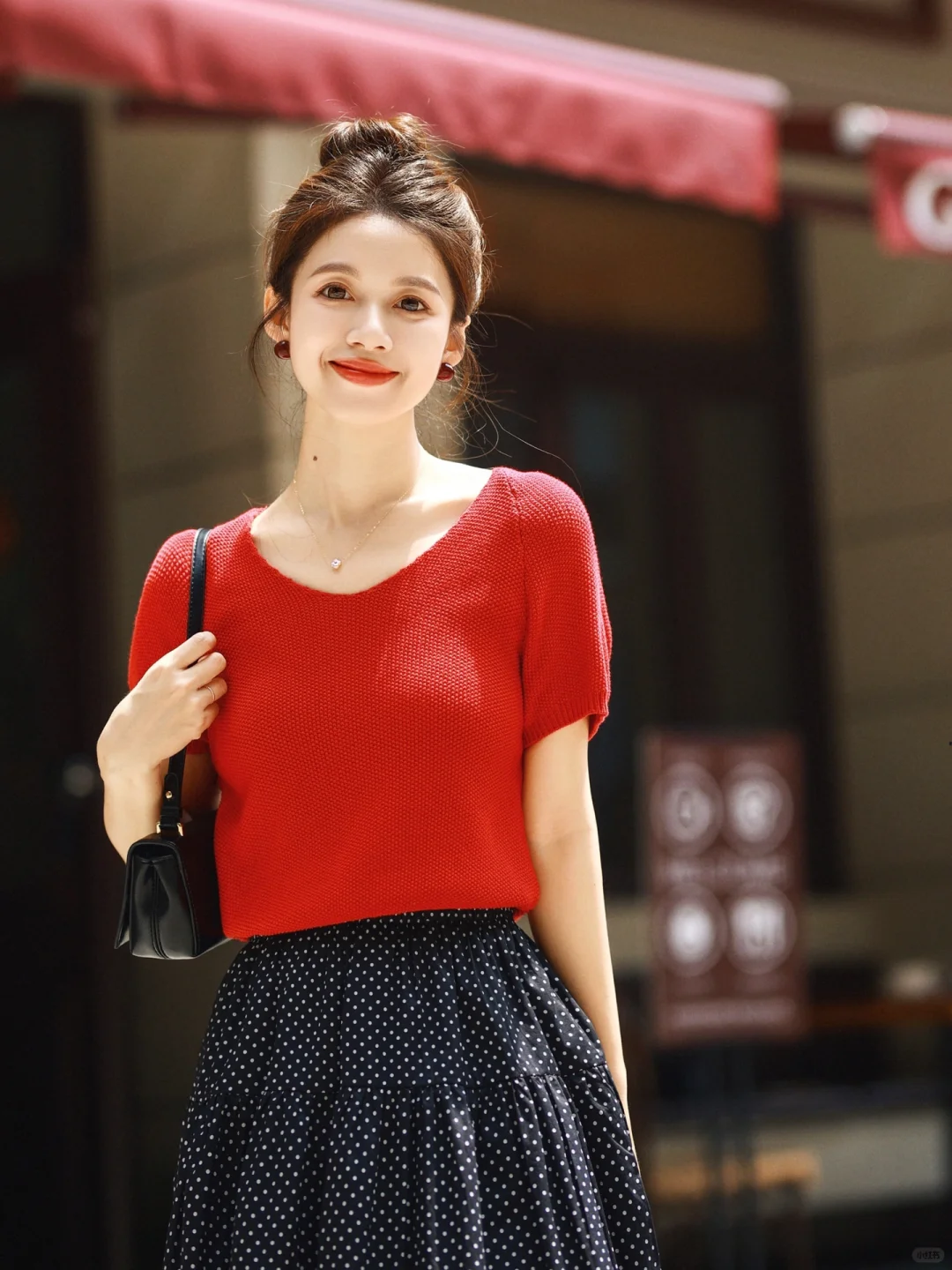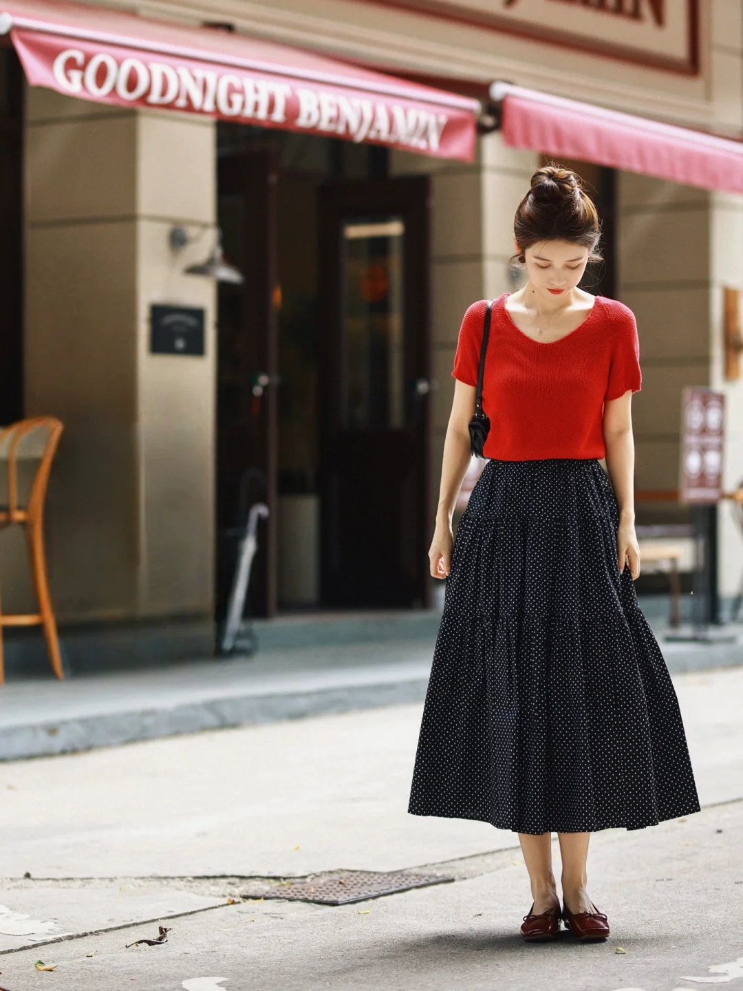 正红配波点,复古不是一点点!街拍就是能把时尚穿出历史的味道,美得穿越了时光,赞