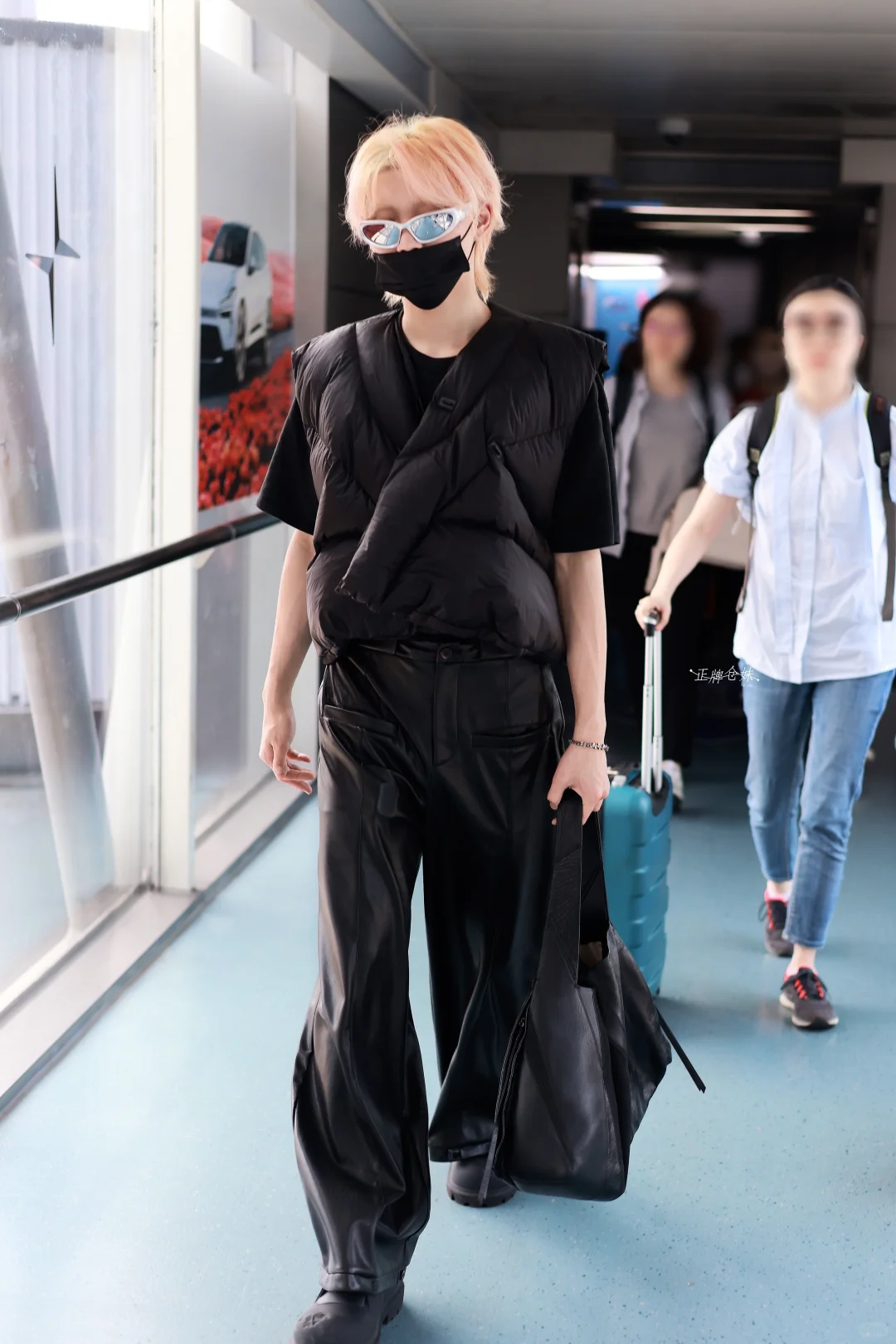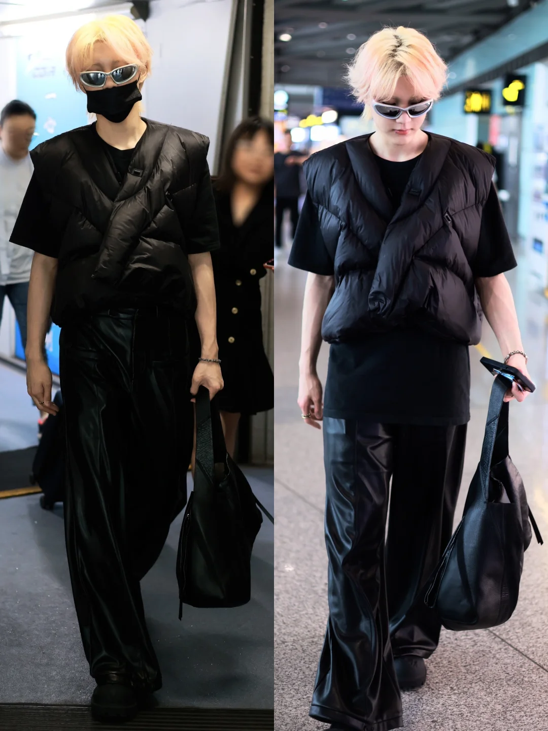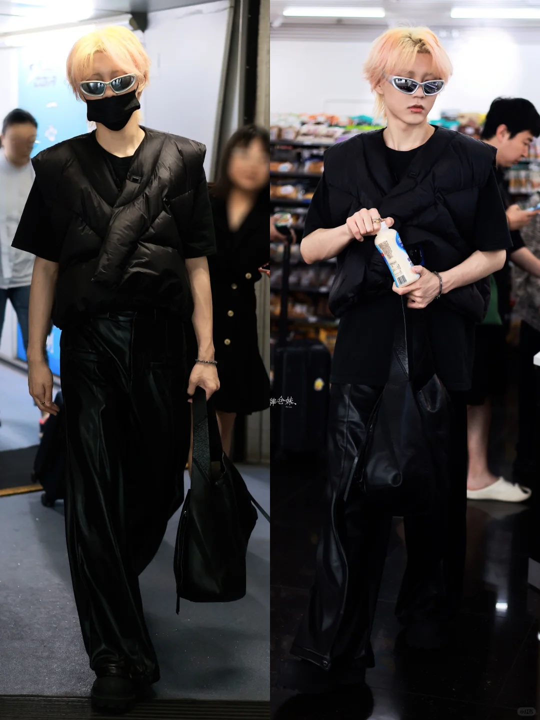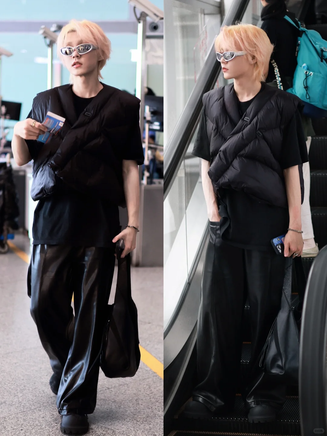 李权哲最新这套在重庆的机场穿搭,太帅了! 金发配银色墨镜,一身All Black风,手提风筝包,从头到脚层次感拉满!要不说还得是你会穿呢! 图源:正牌仓妹