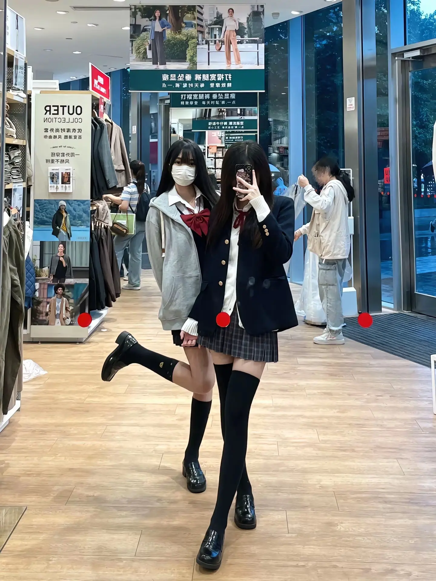 这腿长的,穿jk跟竹竿似的,风一吹就得倒了吧~