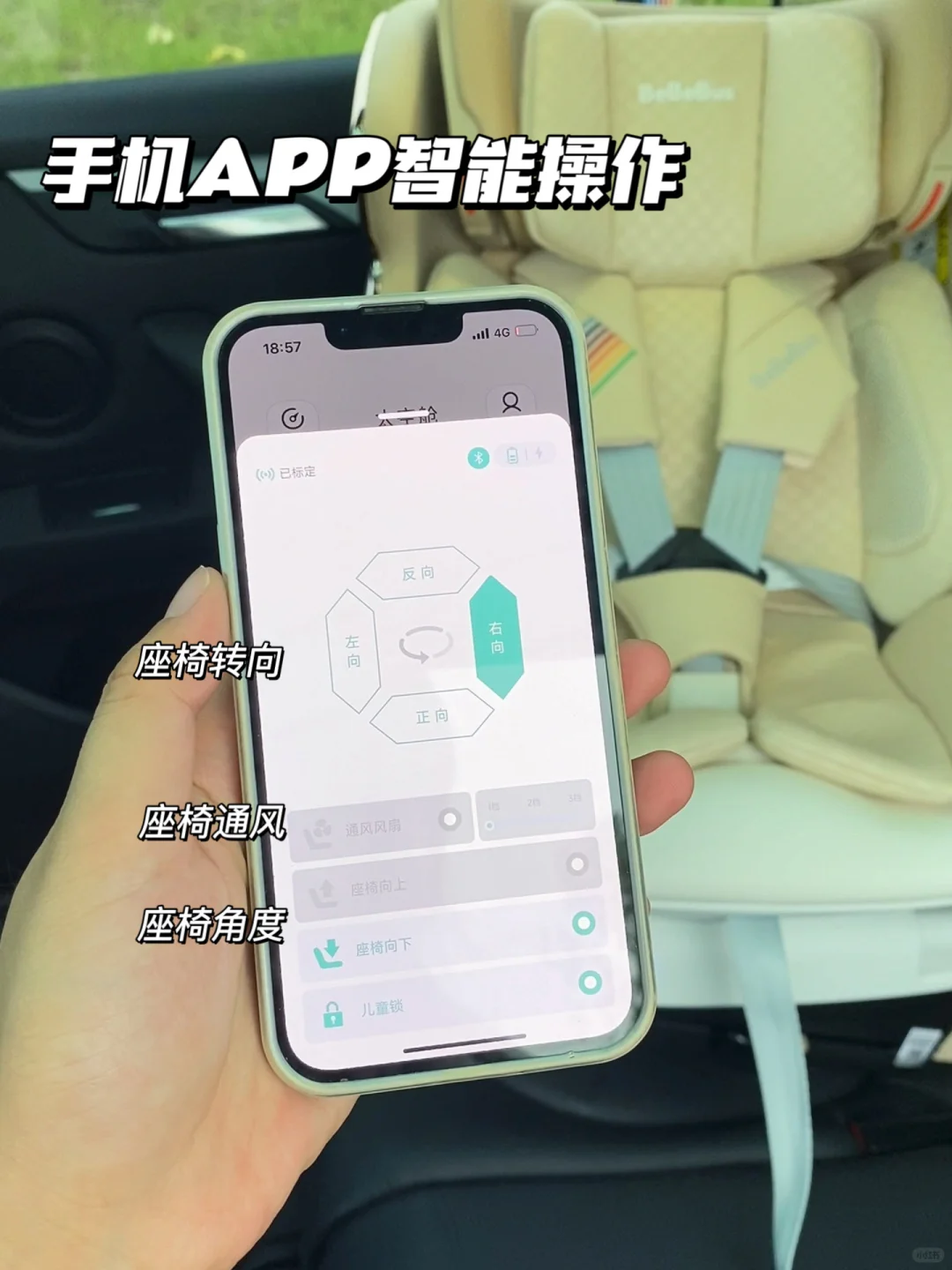 正反无极无扰调节角度,没有档位限制。我在驾驶位宝宝睡着了,在停车等红绿的时候,我也能用手机随时调节座椅躺角,随时照顾宝宝敲方便