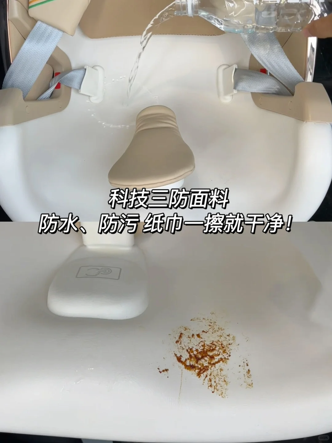 还有科技三防面料,宝宝坐上上边吃东西喝奶,弄脏了也不怕,防水防污,脏了一擦就干净,非常省心!洁癖妈妈懂得都懂!