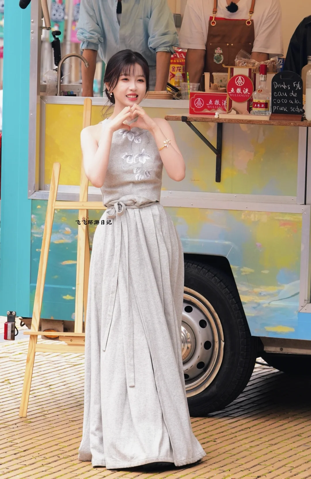 虞书欣今日《中餐厅》路透,青春女大穿搭来喽!