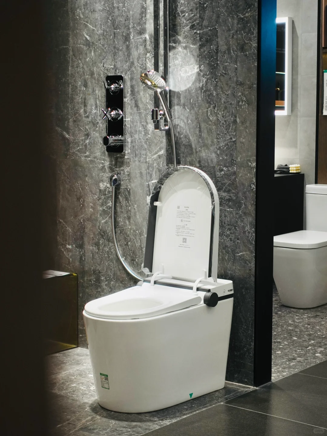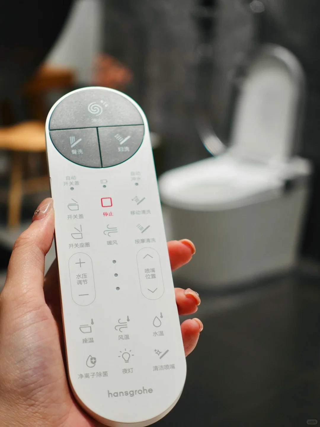 工作人员蛮热情,介绍了汉斯格雅的一款纯境Element S智能马桶,特别适合朋友家紧凑的浴室空间,简约精致,而且功能也很多样~臀妇洗净、自动翻盖、有效除菌的水净科技和360度漩流冲水,配有机械冲水按键,断电也能冲水。