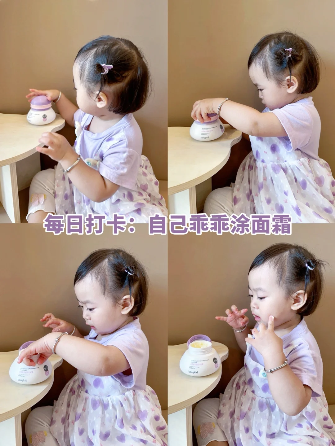 现在每次都抱着瓶子,指着自己的脸说:擦擦