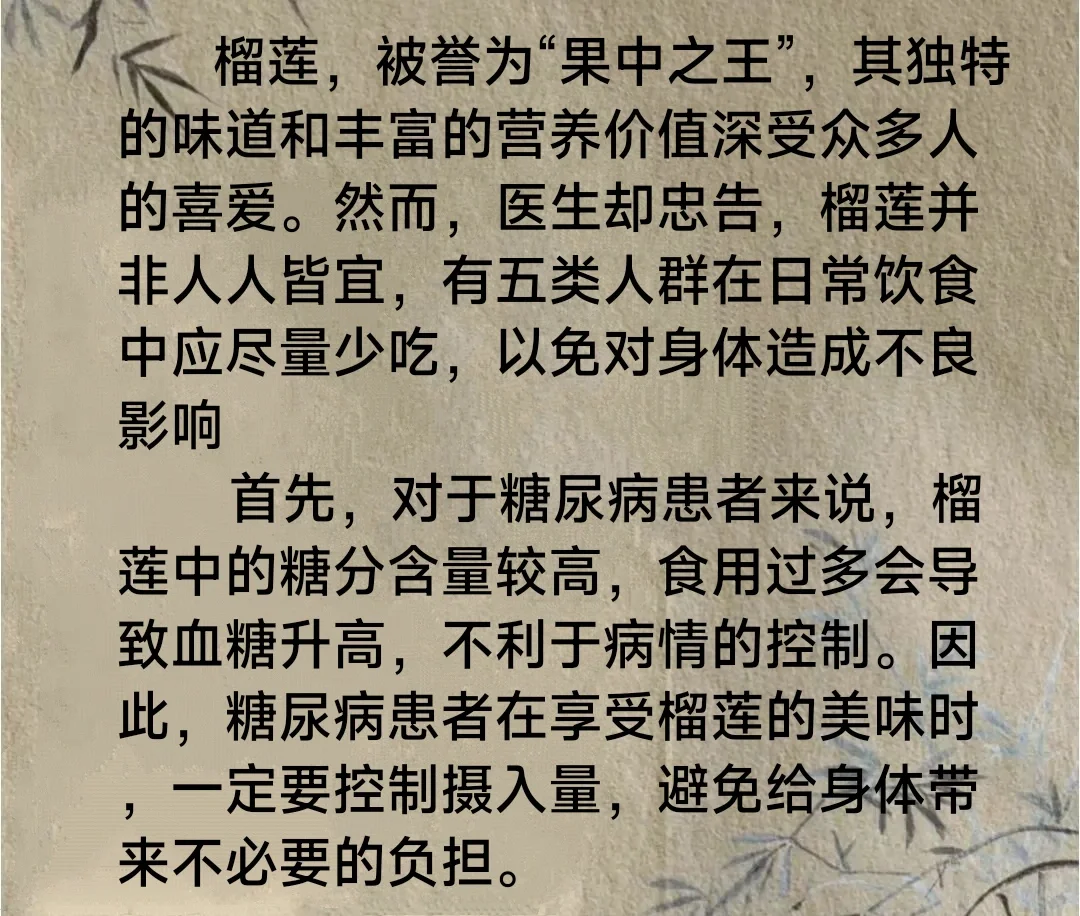 榴莲并非人人皆宜,有五类人群中尽量少吃