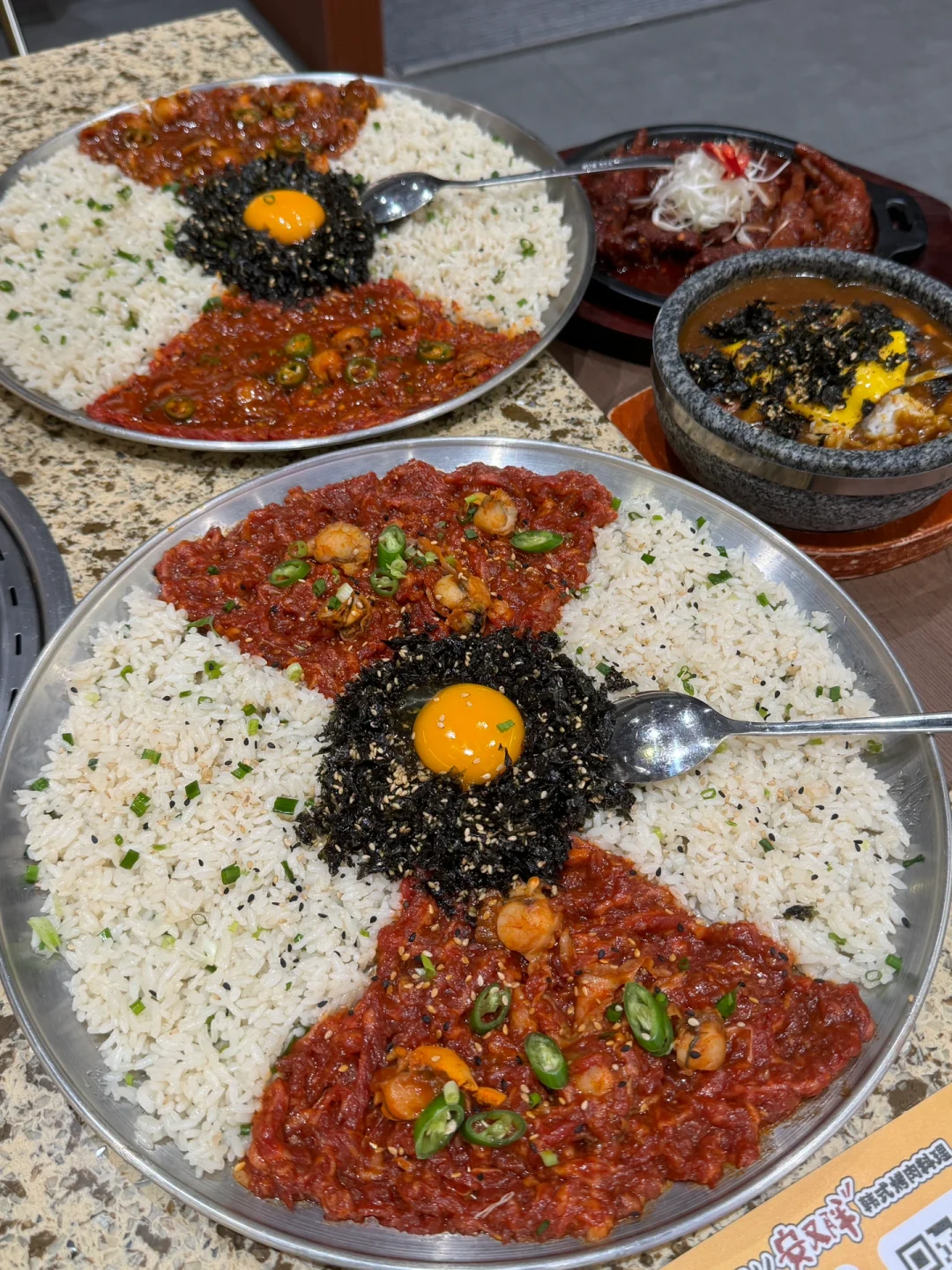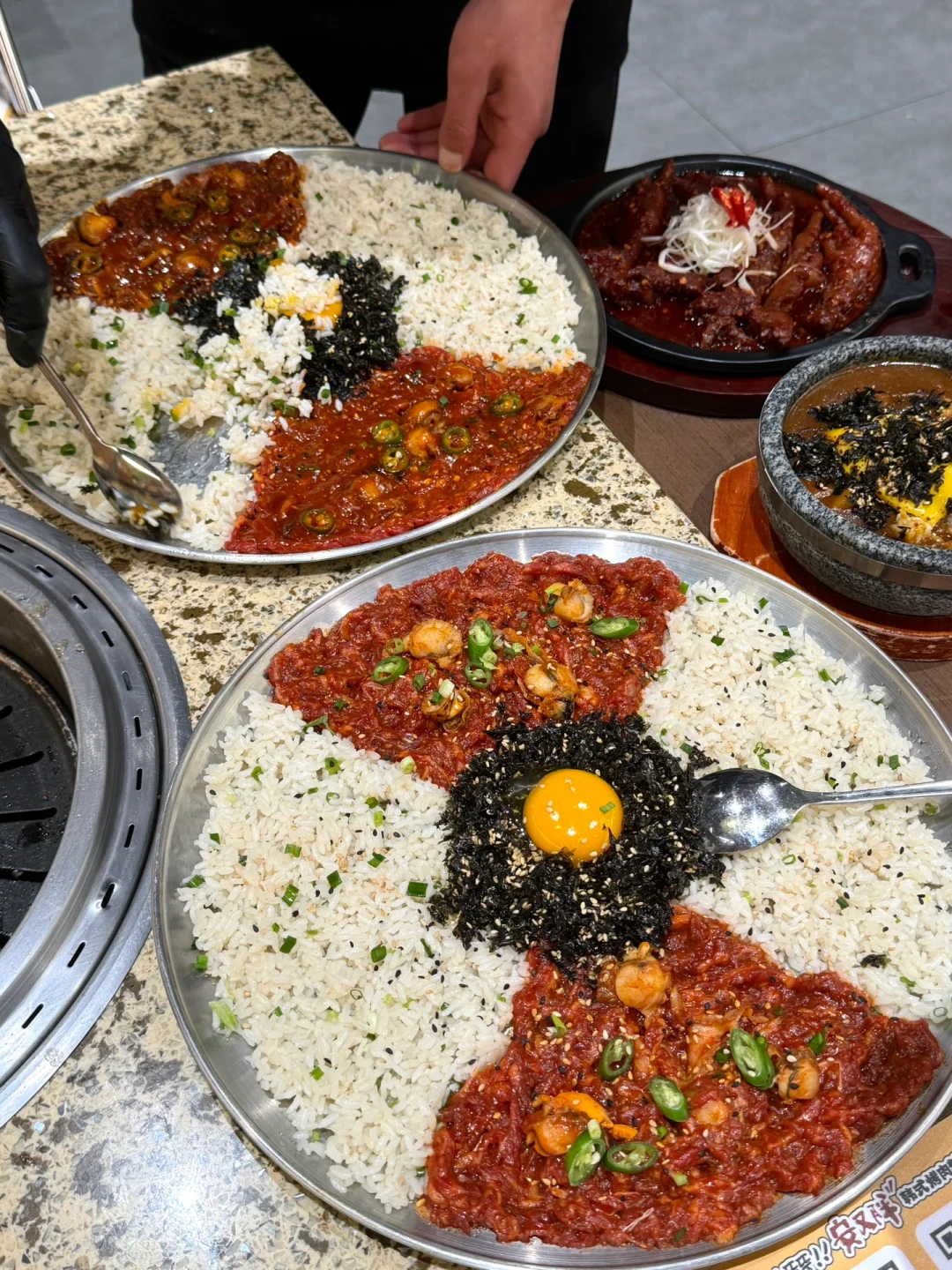 端上来的那一刻都震惊了 盘子比脸大3倍!! 拌开吃真的绝了!!吃一份打包一份!! 大个扇贝搭配生牛肉 牛肉品质超赞👍🏻 无菌蛋和紫菜碎的搭配口感好丰富阿~