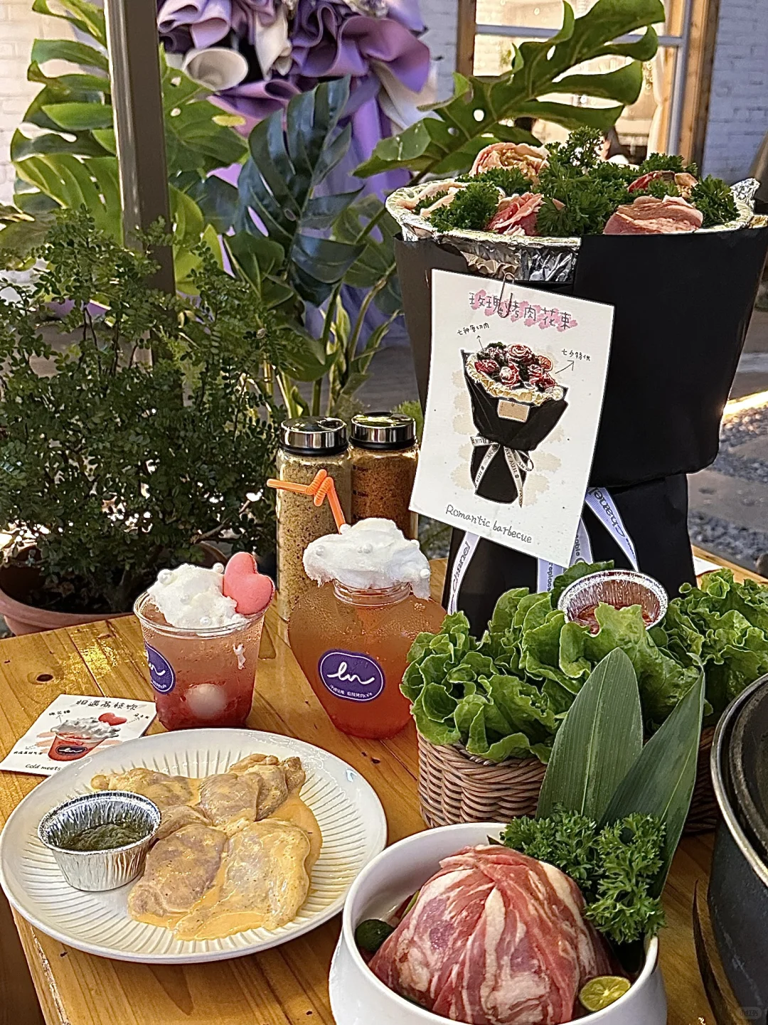 临近七夕节!!餐饮店家真的使出浑身解数…. 玫瑰花烤肉花束💐 真的别太浪漫😭原图直出都是chao美的存在… 放在烤盘上肉滋滋冒油….真嘟要香S…. 相爱石榴饮❤️相遇荔枝饮 相遇相爱相知 不可缺少的一部分 在天愿做比翼鸟 在地愿为连理枝 💕 每次到七夕看见这种浪漫的场景 脑子里都会浮现出这样一副画面 拍照📷美食 下午茶在这里都能呆一下午…. 环境是庭院式的!!就像在度假一样!!可以发呆… 放空自己…也可约上朋友一起打卡拍照呢