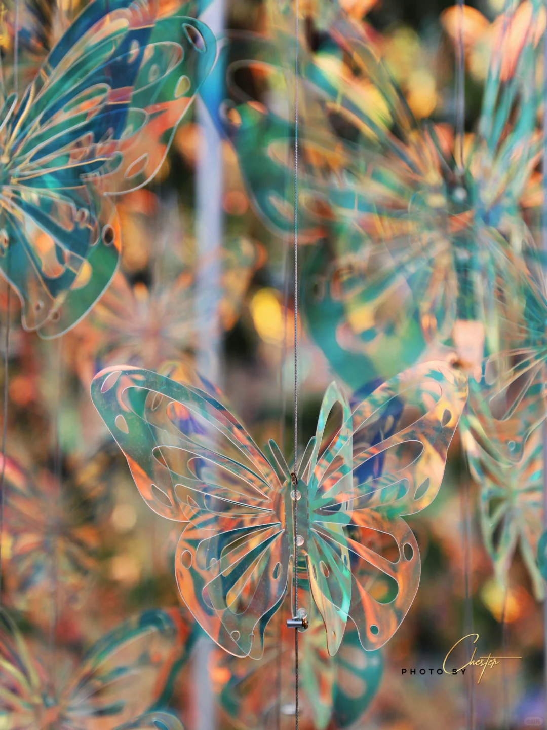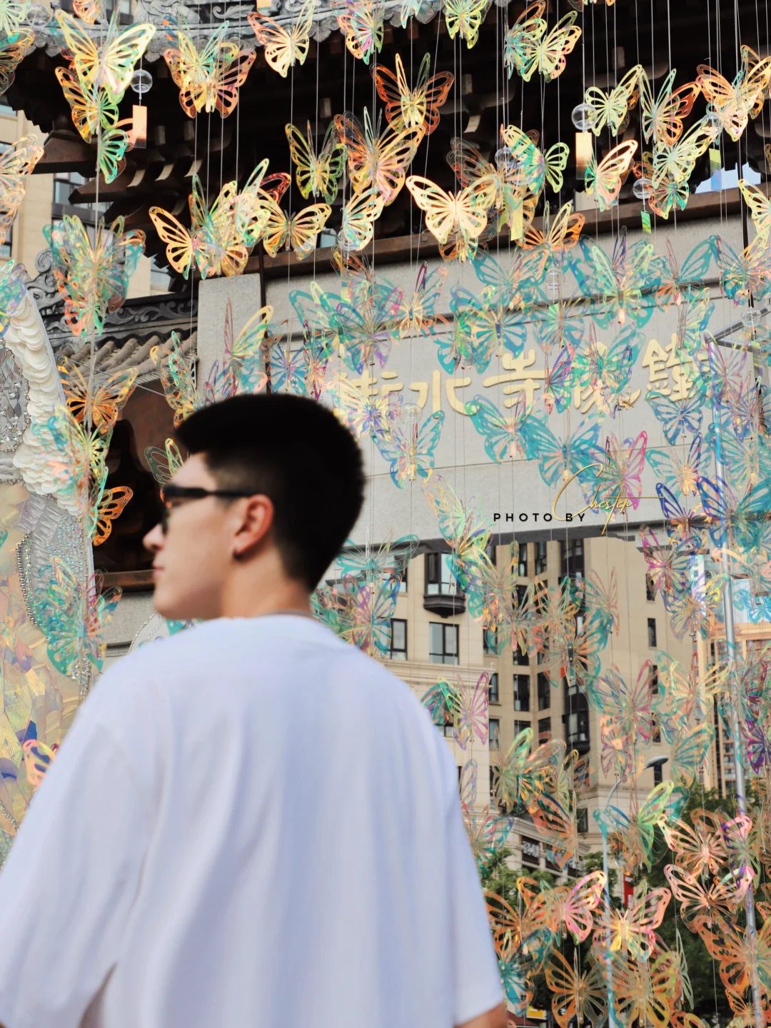 牌坊后的梦幻蝴蝶,风一吹,蝴蝶翩跹而动,折射出绝美的光彩,真的超美。