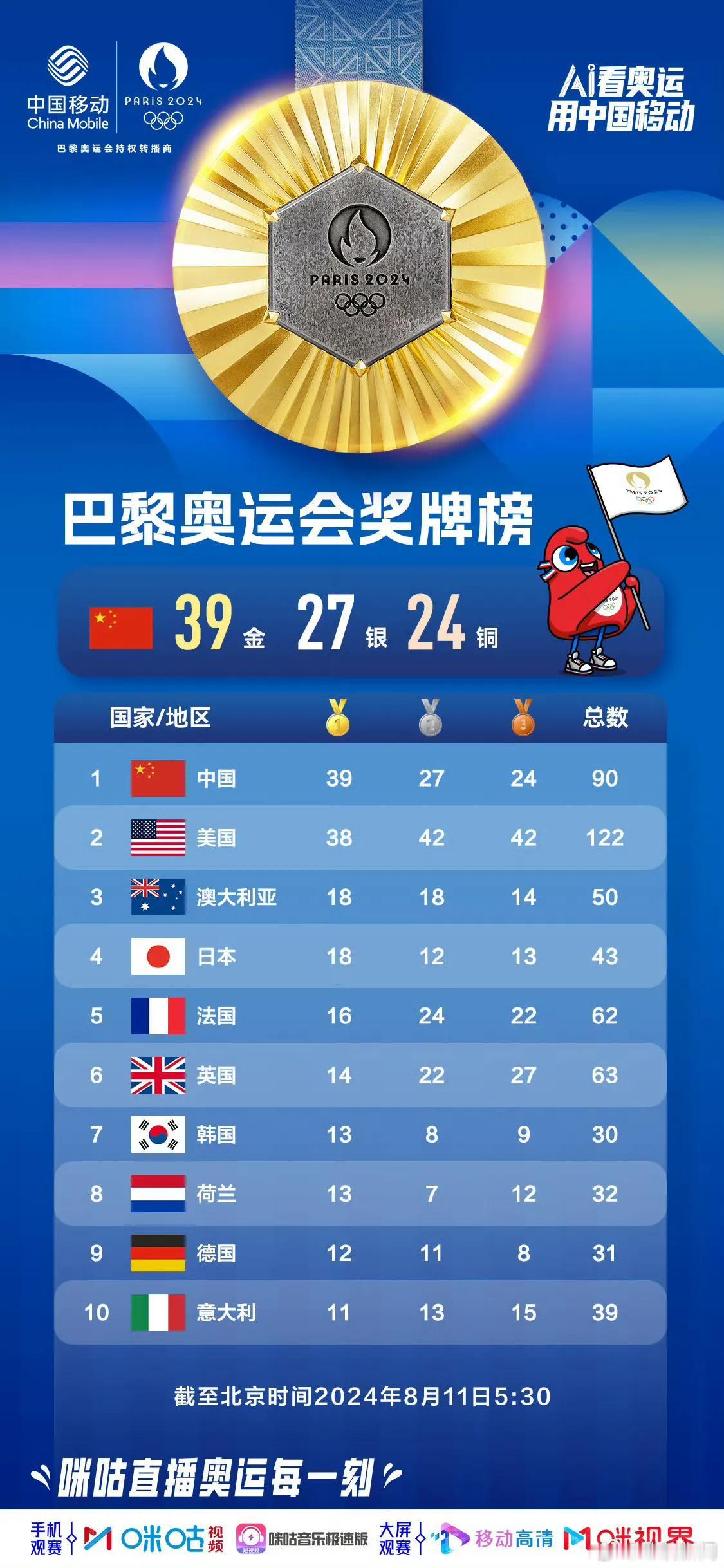 #寻找热爱表达的你#在巴黎奥运会,中国体育代表团已赢得39金27银24铜,金牌数超越上届东京奥运会。 中国代表团金牌数比美国队多一枚,最后一个比赛日,中国代表团还有一个夺金点,美国队还有4个夺金点,竞争相当激烈。 中国代表团的夺金点是,李雯雯,举重女子81公斤以上级。美国4个夺金点是,女子排球、女子篮球、女子摔跤、女子场地自行车全能。 加油,中国运动员!