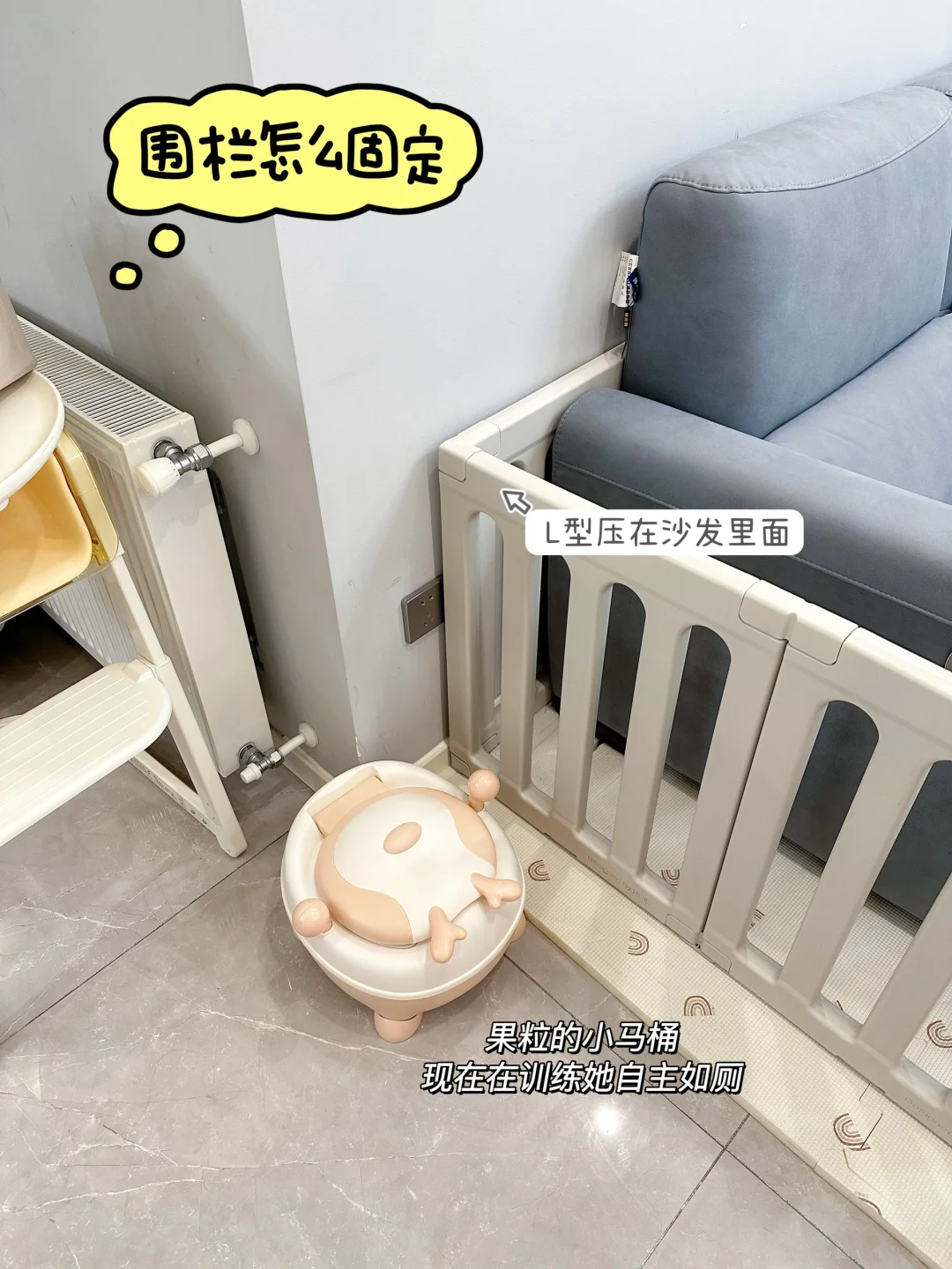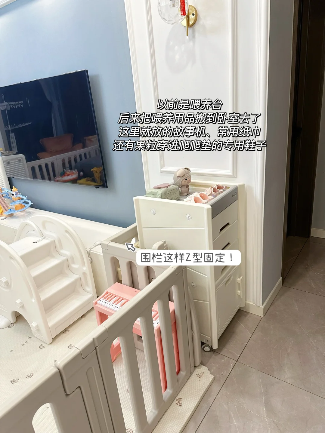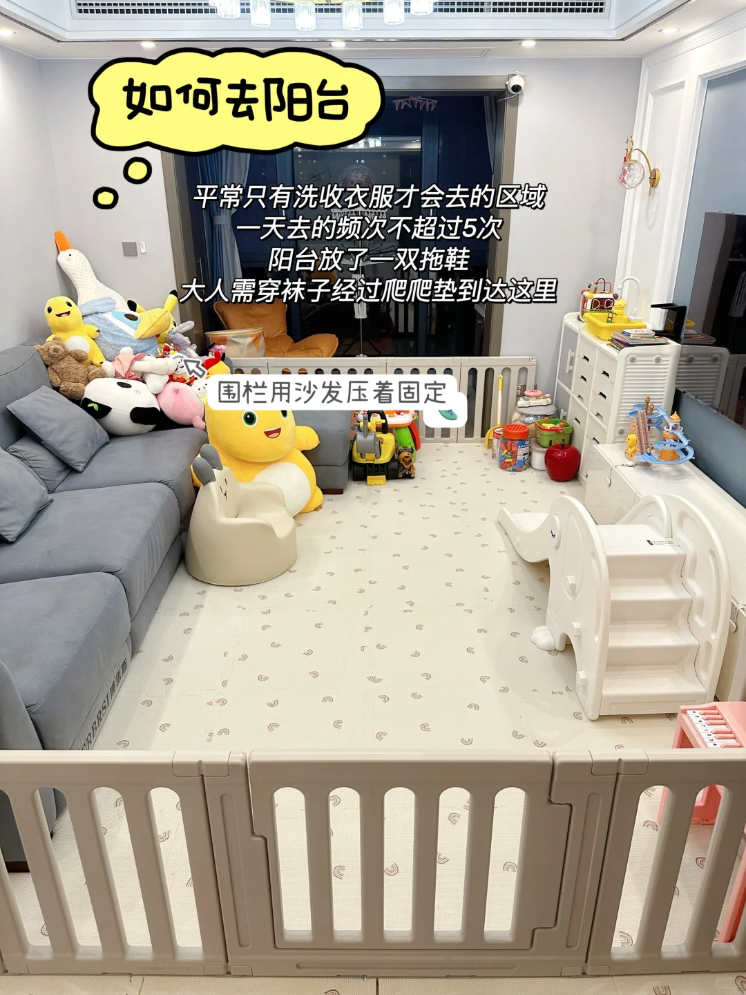 依然觉得这是非常明智的决定!! 过完周岁就把客厅改造了 果粒每天都会在里面玩很久 大人能安心去干别的事情 不忙的时候也会陪伴她一起玩耍!