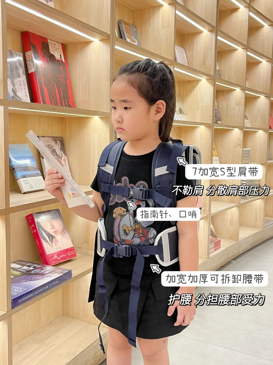 书包内也是科学的分区设计,文具书本都能有序放下,拿取也很方便,小侄女拿到就爱不释手,背着就要去图书馆看书,介护脊书包真的买对了,关键才百元,性价比也是绝绝子,开学季准备书包的都可以闭眼冲!