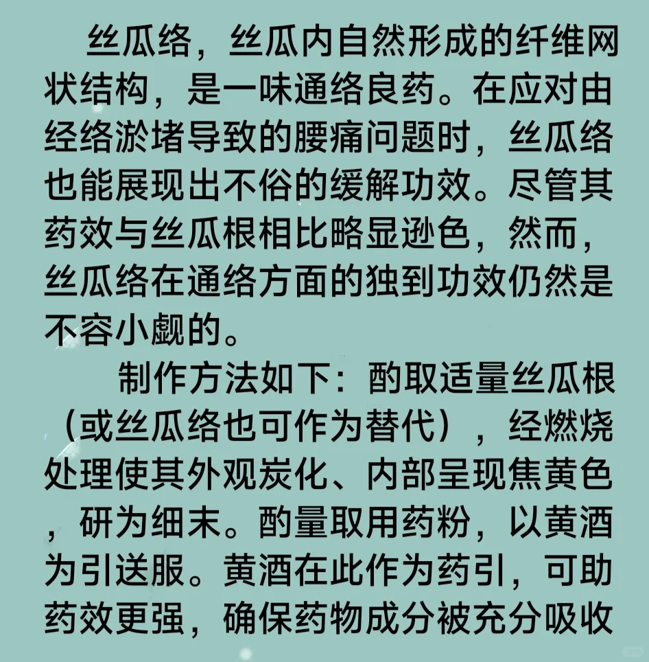 腰痛,……丝瓜根(丝瓜络)……