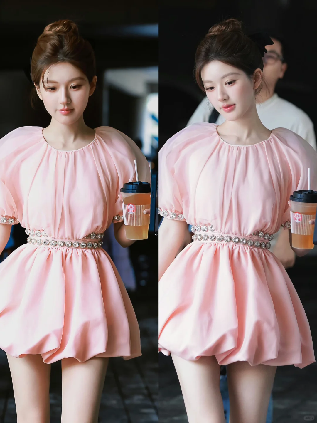 姐姐这身粉裙直接美到犯规!针织纹理把腰臀曲线勾勒得曲线毕露,削肩设计衬得脖颈修长