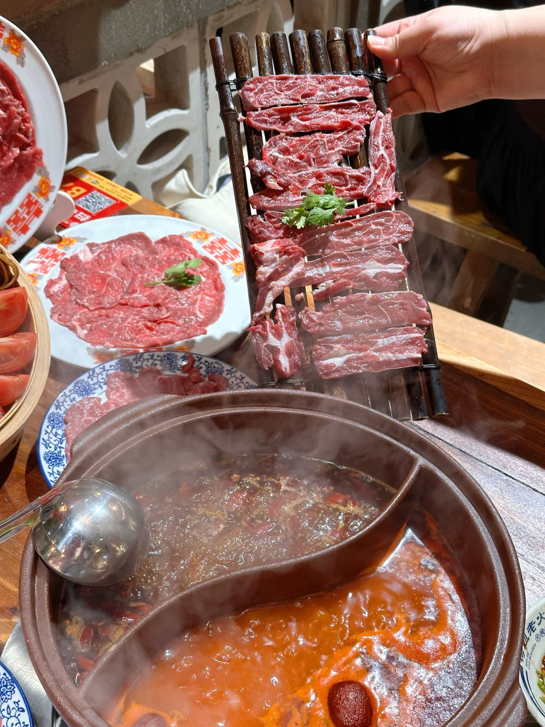 逛华丰路看到的新开的火锅店…下雨都坐满了[偷笑R] 🏡店里装修还挺有意思的🎊梦回80年代🎥 沉浸式吃火锅🍲进门就是明档厨房 火锅底料都是现炒的💰价格还挺惊艳的 肉类没有超过30💰基本都是19.9/29.9🌱素菜个位数🌽列入会再回头吃的系列[色色R]