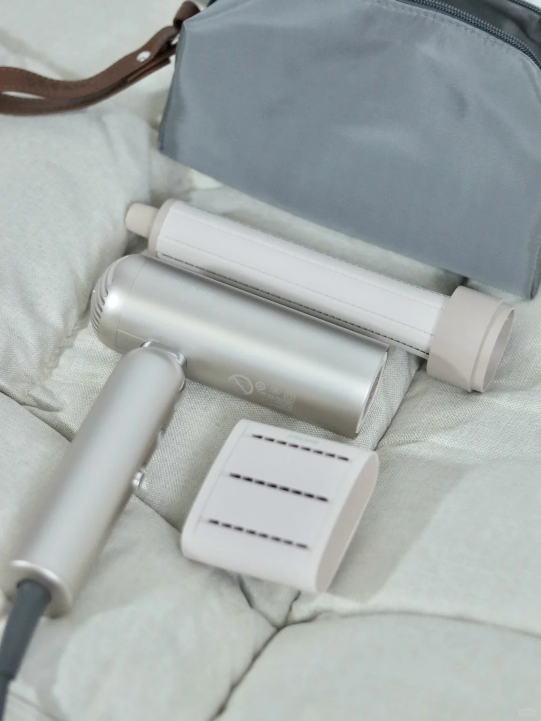 这款吹风机简直是为我这种黑长直量身定做的"关键是这钛金金属颜 高级感真的爱了 折叠收纳形态收纳配上专属收纳包 非常好携带 还小巧轻便相当于一瓶矿泉水的重量 还有小熨斗顺直风嘴和卷发风嘴 小熨斗可以抚平头发的毛躁 吹完头发非常的顺直有光泽感 卷直造型随意切换,手残党也能驾驭 真的吊打理发店,连 tony 都连连叫好回
