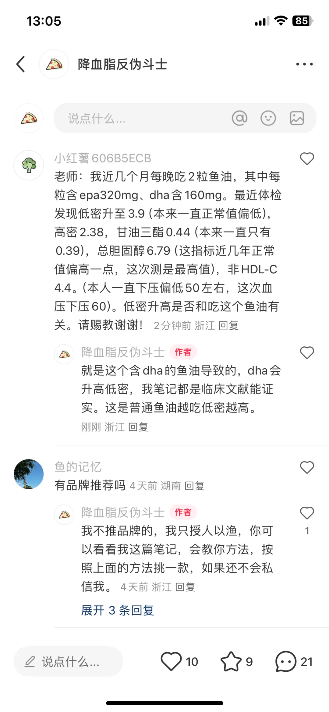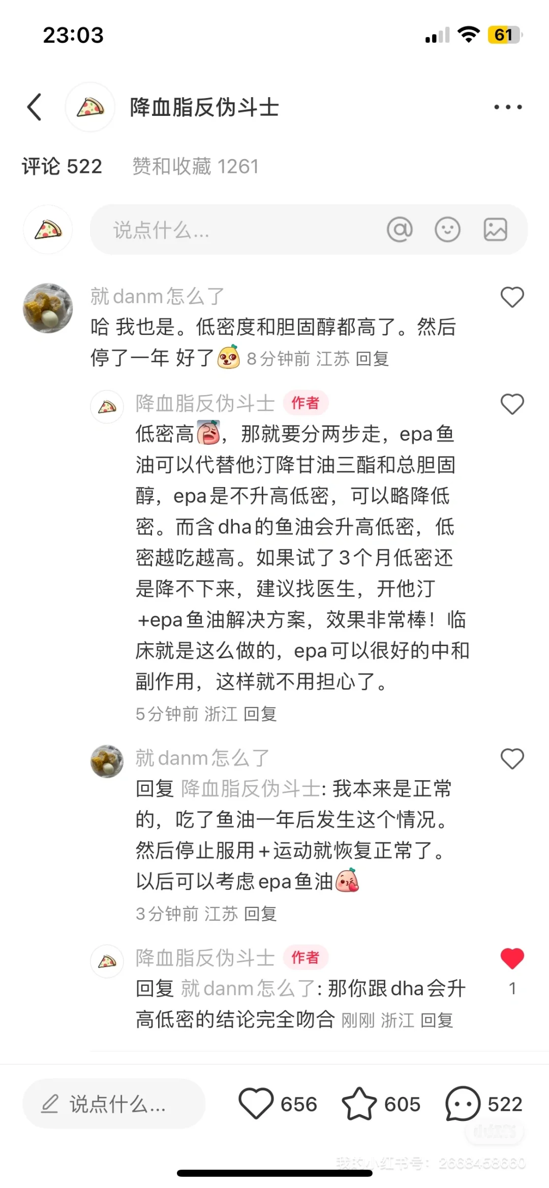 [生气R]图2和图3是大量的吃含dha的鱼油升高低密的案例,在我其他笔记的评论区比比皆是。奉劝那些商家,索性面对现实好好做产品,也可以推出epa鱼油来帮助血脂异常的人,他们还是很可怜的。当然,我也重申:dha也是好东西,前提是血脂健康,你的机体才能平衡和调节不会升高低密。但是误导血脂异常的人还摄入DHA真的是害人。[抓狂R]