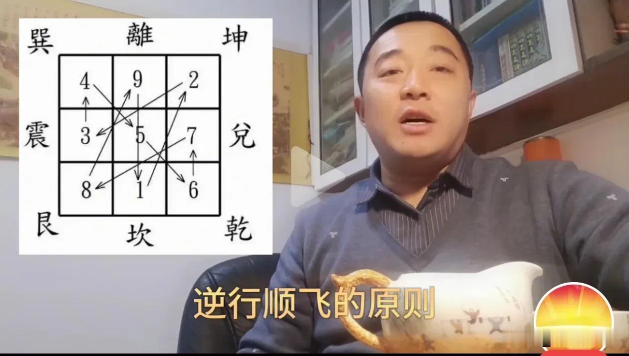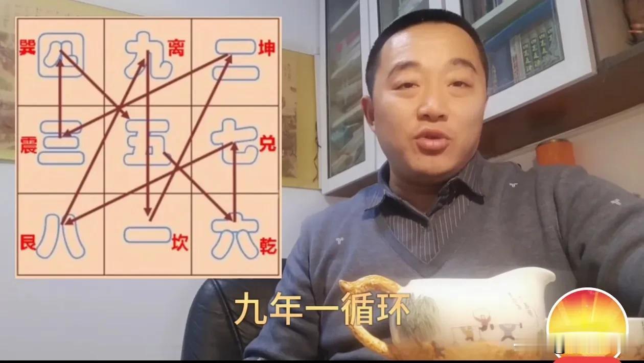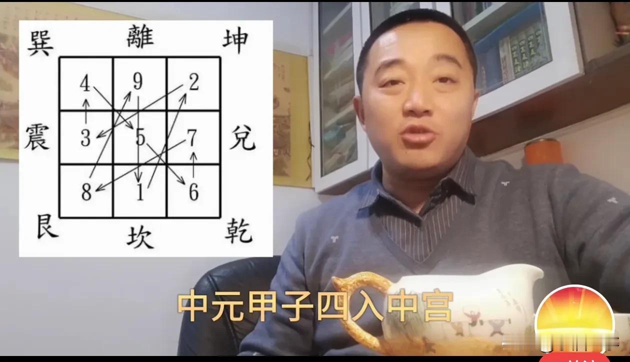 神奇的1,4,7,三元进中宫的甲子数字。再按河图起始盘 567891234顺序,逆行顺飞原则排列,九宫飞星成。