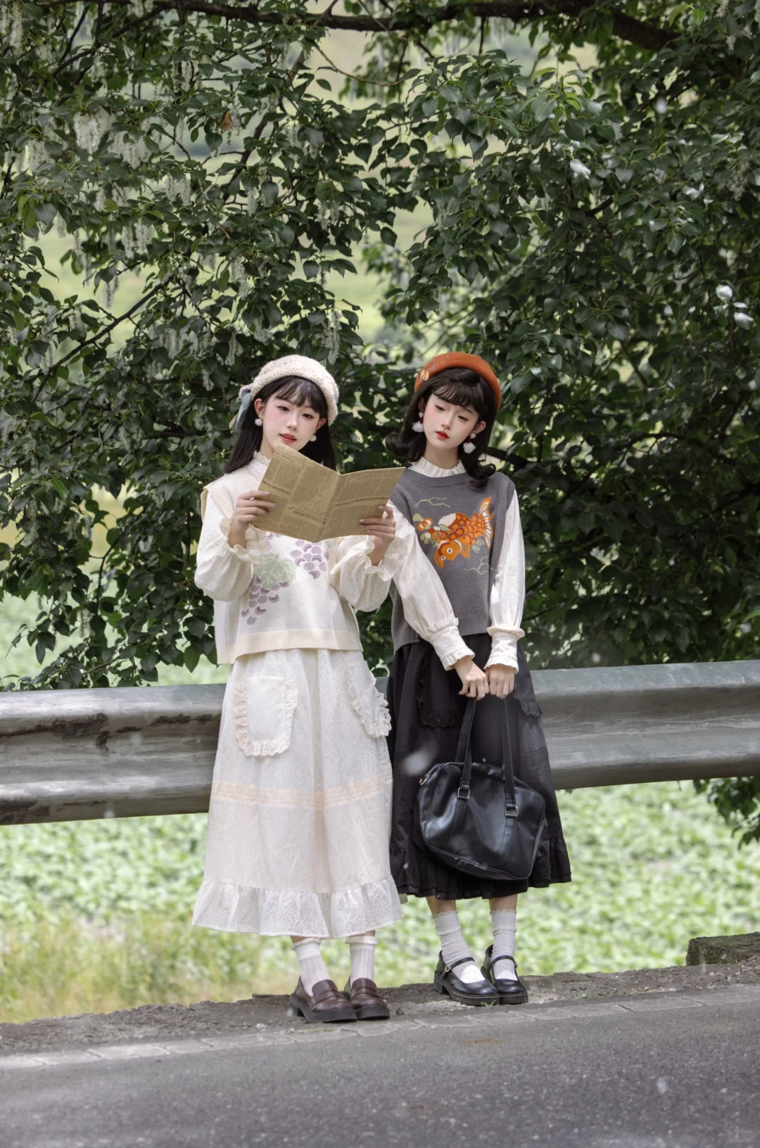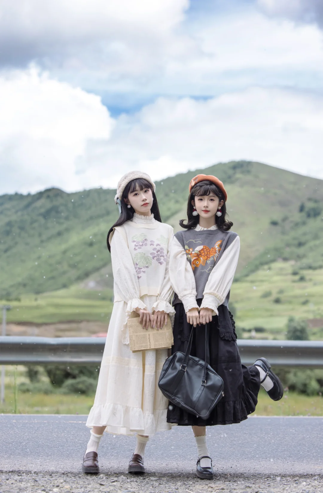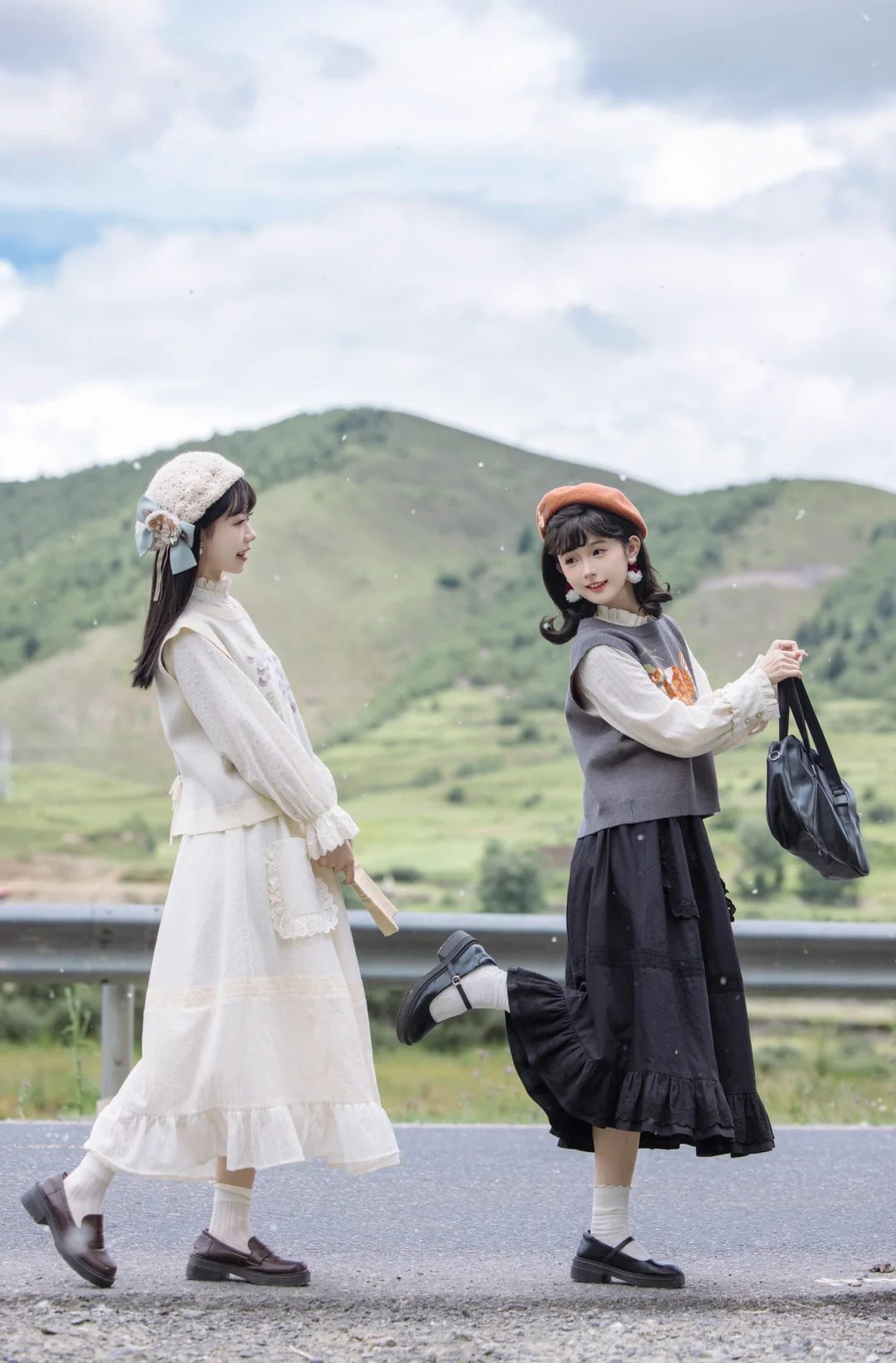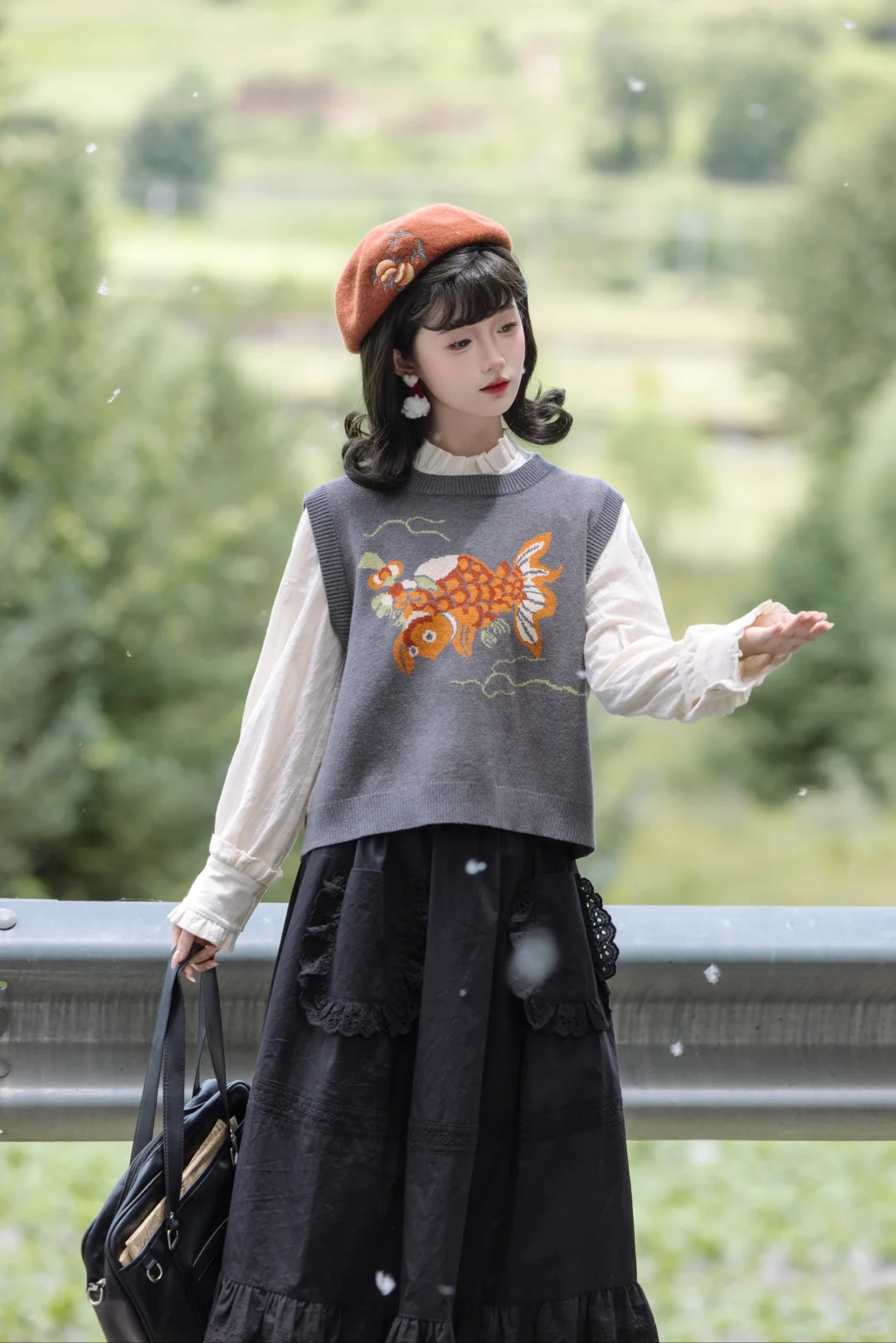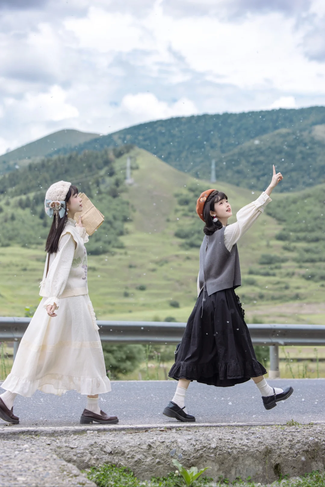其实是柳絮啦hhh 路途上时常会有偶遇的惊喜 没想到在草原先看了一场雪 . 森系文艺的国风裙套装与纷飞的“小雪花” 就像是复古电影里的画面,静谧而充满故事感[喝奶茶R]