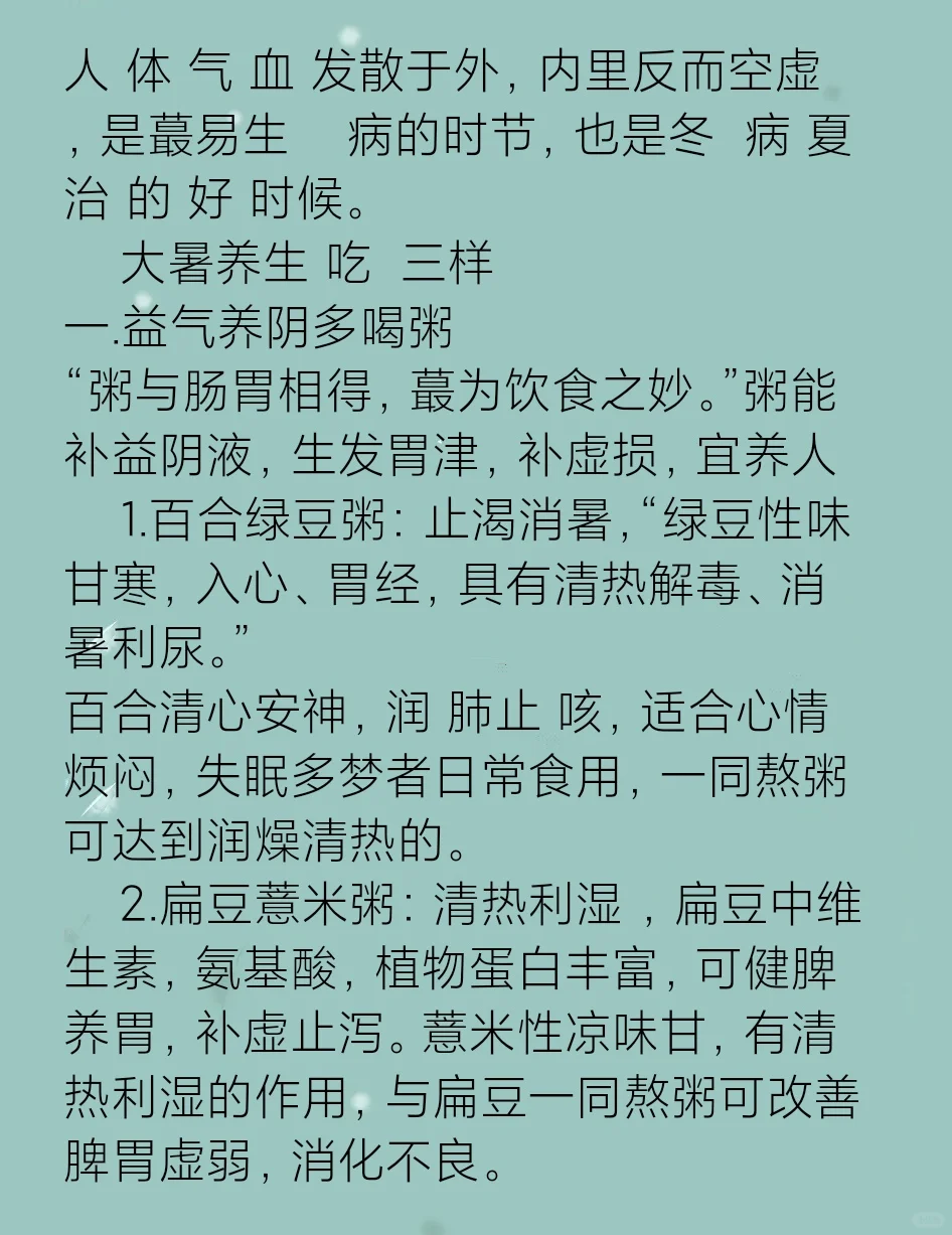 家人们,大暑后养生吃…三样,安然度夏……