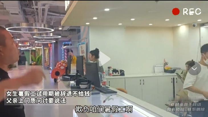 “想白嫖,没门!”吉林,女孩暑假勤工俭学,没成想试用期一过就被经理辞退,孩子委屈哭的泣不成声,父亲得知后前来评理,“有你们这样的吗?欺负小孩!”结果,经理却大言不惭道:“这是店铺规定的,有本事你报警去!”那么究竟是经理大还是法大呢? (信息来源:临沂综合广播2024.8.12女士暑假工试用期被辞退不给钱,父亲上门质问讨要说法) “凭什么不给钱!干活不给钱啊!” 原本冷清的商场,因为男子的怒吼沸腾了起来,而他并不是无理取闹,一切还要从昨天下午讲起。 饭桌上,女儿小丽突然情绪崩溃,哭了起来。 老爸看到后,心疼道“咋了,谁欺负你了?” 下一秒,女孩哽咽着讲述了被经理欺负的过程,暑假刚开始,她就在某游乐场做导购,每天早出晚归,累的筋疲力尽。 只因为经理告诉她,只要做的好,不仅可以转正还能有一笔不小的奖金,岂料试用期刚过,她就被辞退了,理由竟然是“工作态度不积极”,遭到了客人投诉。 听闻此话,父亲气的牙都咬碎了,这段时间女儿的辛苦自己是看在眼里的,什么态度有问题,摆明就是经理耍赖皮,不想给女儿开工资。 “这不就是白嫖吗?天底下哪有这种道理?” 一气之下,他带着女儿来到这家店铺门前,开始讨要公道,结果不想,经理却猪八戒倒打一耙,“赶紧走,别影响我们生意!” 眼瞅着对方一点悔过的意思都没有,男人索性吼着嗓子,开始在商场里吆喝:“快来看啊,欺负小女孩,给他打工一分钱不发!” 岂料,经理还是不愿妥协,并态度强硬的表示,当初说好的,试用期没有工资,女孩也是同意的。 对此,男人则表示,你先前答应我女儿干好了可以转正,结果试用期一过就辞退她,很明显就是在钻法律的漏洞,必须给出赔偿! 最终,双方各执一词,吵得不可开交。 很快,周围聚集了一大堆围观群众,听完了小女孩的遭遇后,一个个深表同情,直言这经理没有人情味,连个涉世未深的小女孩都骗! 那么问题来了,“试用期一分不给”,真的符合我国《劳动法》规定吗? 首先,经理的话本身就不合法。 因为《劳动法》中明确规定:劳动者在试用期内其工资不得低于本单位相同岗位最低工资或者合同规定工资的80%,换言之,所谓的“试用期内一分不给”是违法的。 当然了,遇到那些不适合本岗位的人,用人单位有权在试用期结束后解除合同,但不得故意延长试用期,榨取他人的劳动成果。 对此,你怎么看,欢迎在评论区留言、讨论。