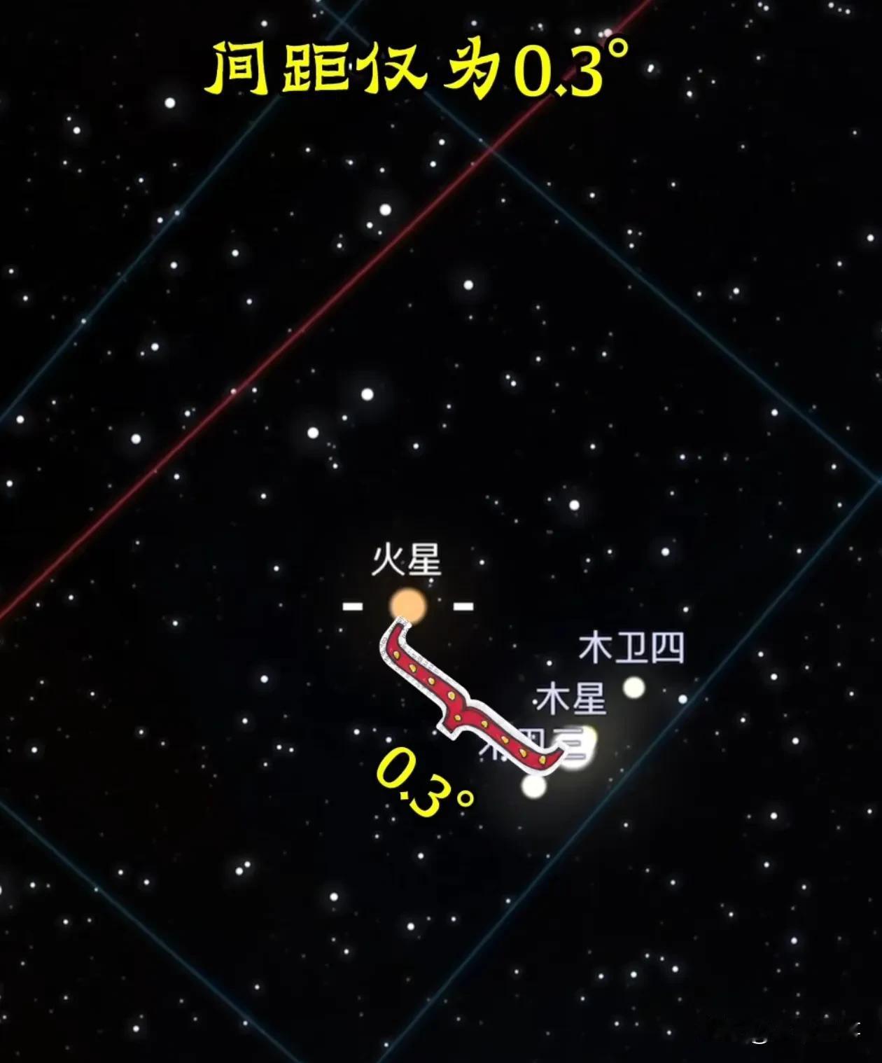 《史记.天官书》:“同宿为合,相棱为斗,七寸之内必之矣”。两星相遇,芒角相及,同光为合(七寸之外),相棱为斗(七寸之内)。8月15日0:57分(子时) 火木同入毕宿(东南),荧惑冲岁七寸之内。古人有"不识天文不拜相。不识地理不拜将″之说。看懂了吗?