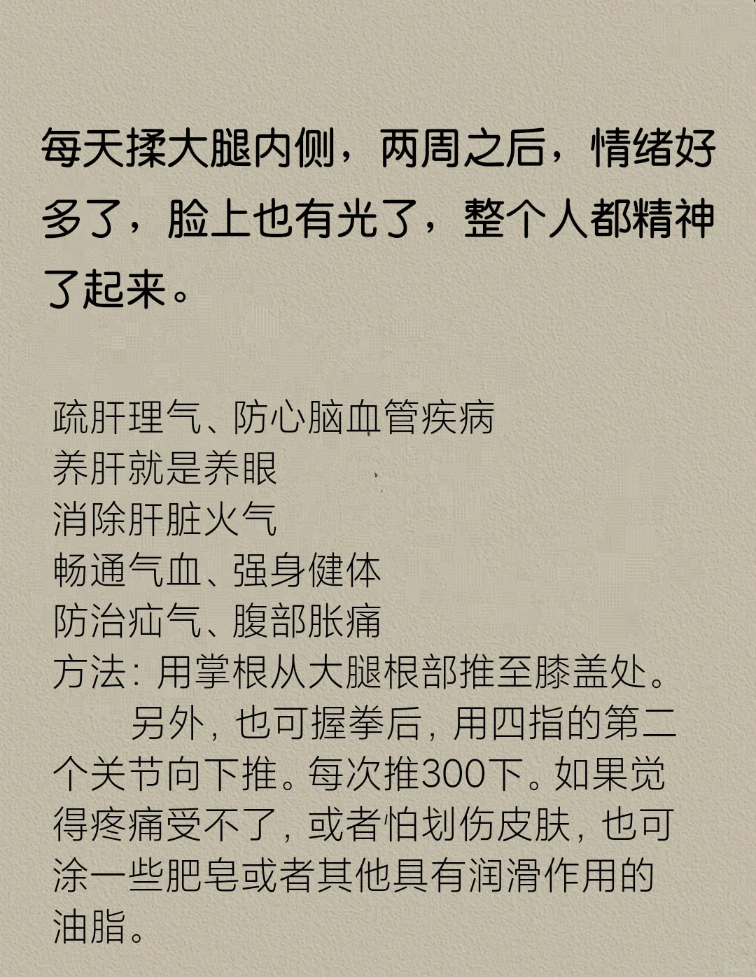 每天揉大腿内侧,情绪好多了,脸上有光了