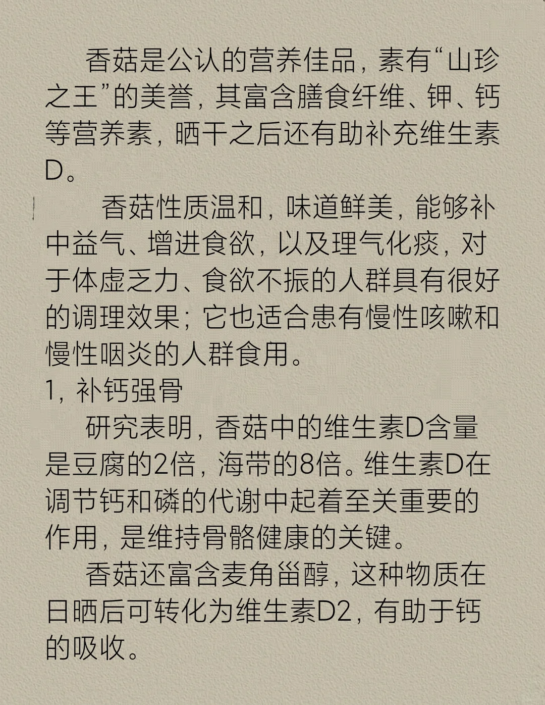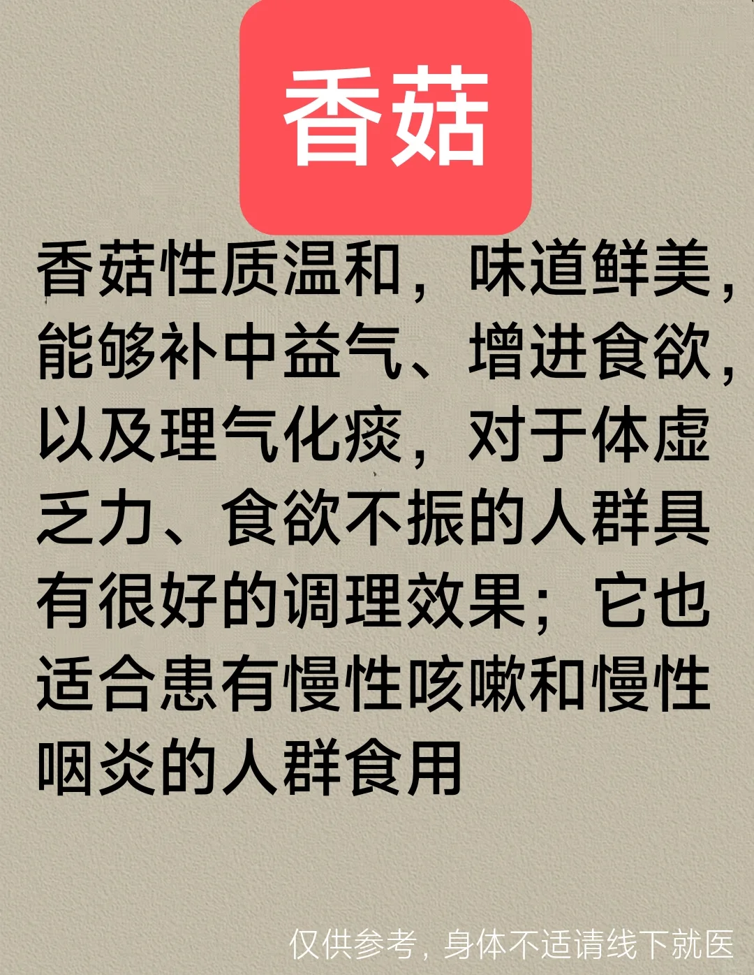 你知道吗?香菇有健脾开胃、补充营养、补钙