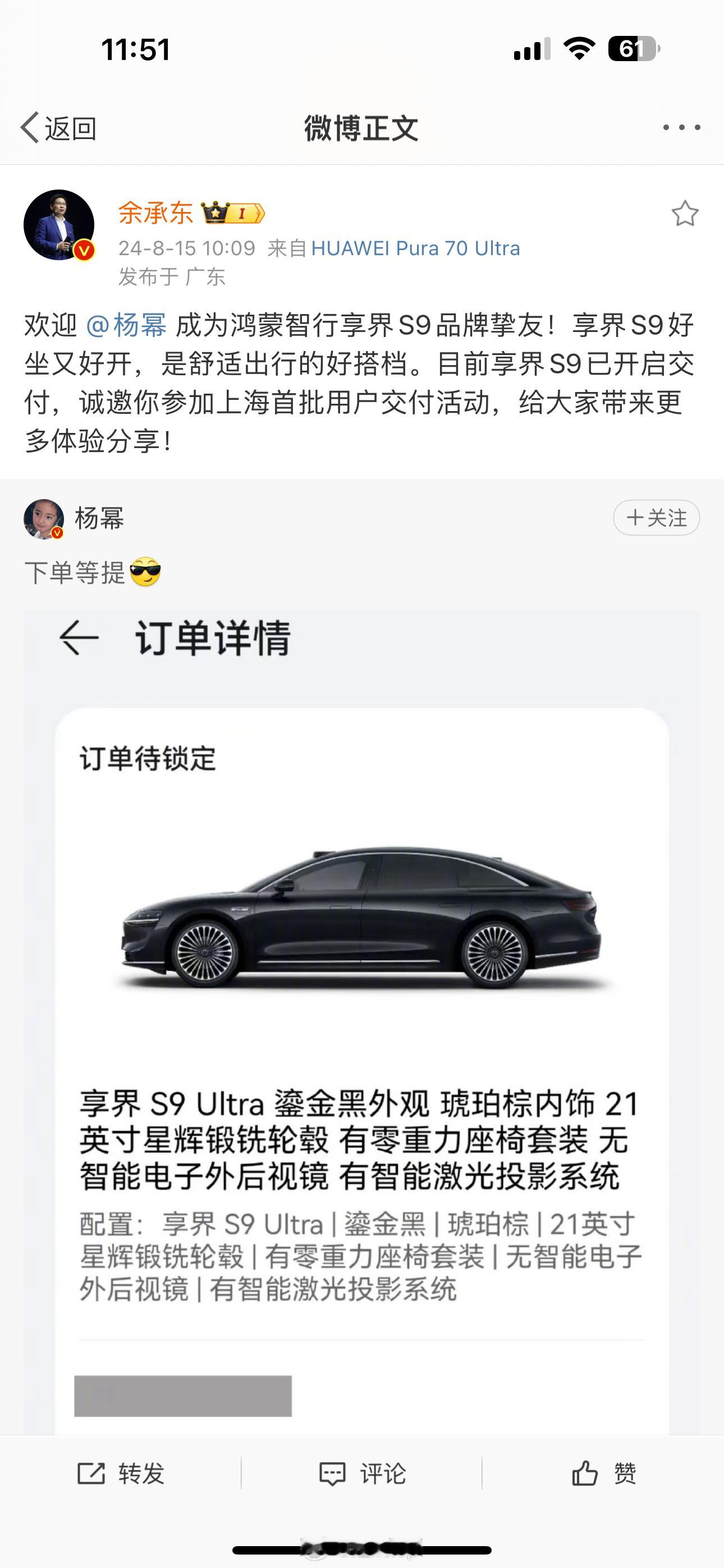 杨幂下单享界S9 等待提车!如果你是享界S9车主,那华为给你安排了和做车友,这调性拔得高不高? 全是大明星#东北电吹# #杨幂下单等提#