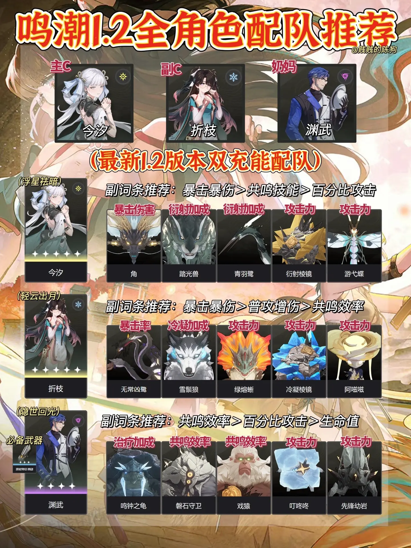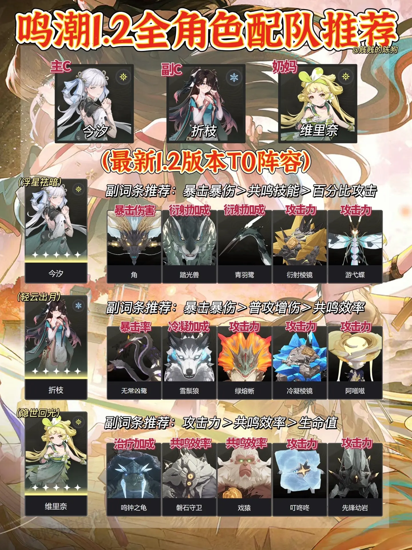 鸣潮|最新1.2版本全角色配队推荐!速来。目前最佳配队:今汐、折枝...
