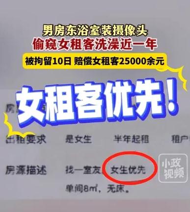 “老不羞!”上海,美女和男房东同处一室,每次洗澡前,对方总会找借口去里面待一会,女人洗完后,房东还要再上一次厕所,时间久了,美女心生疑惑,终于在角落里发现了摄像头,原来自己的裸体早就被房东看干净了,愤怒下报警,结果房东只是行政拘留10天外带罚款2万5千块,而她却永久患上了抑郁症... 网友:这代价真便宜,25000块平均一天仅需68元4角9分钱。 (信息来源:光明网2024.8.14 细思极恐!来沪女生和男房东合租一年后,在洗澡时发现摄像头) 李娜是一个“沪漂”,由于囊中羞涩,便在网上找了一家便宜的出租房。 房东姓徐,是一个怪老头,因为他在租房合约中特别标注了:单身女子优先,而且最好年轻、身材好等要求。 虽然有些担忧,但考虑到每月仅需1600块就能在上海暂时落住脚,李娜毫不犹豫的搬了进去。 之后的日子里,她发现徐姓房东人还挺好的,经常有意无意关照自己,甚至也没有无理涨房租。 只不过有一点,女人每次去洗澡时,老头都会抱着手机先一步进去,几分钟后再出来。 碍于这是人家的房子,李娜也不好说什么,就这样半年过去了。 这天晚上10点,李娜照常来到浴室门口,准备洗漱,不知为何,她总感觉角落里有一双眼睛在偷偷窥视着自己。 原来,就在两分钟前,房东再一次以毛巾落在厕所为由,进去了一趟。 “难不成有什么猫腻?” 女人壮着胆子,缓缓来到窗前,窗帘拉开的瞬间,露出一台摄像机,此刻处于开启状态,正对着淋浴间... “臭流氓,无耻!”这一刻,李娜终于明白了房东在耍什么伎俩,一想到自己的身体早就被看光了,她连忙拿起手机拨打110。 审讯室里,徐姓男子面对铁证,最终承认了自己的偷窥事实,他说自己馋小李的身体不是一天两天了,由于客观原因,只能靠录像来满足欲望。 最终,男子被拘留10天,罚款了2万5千块。 对此,警方的理由是,虽然徐某进行了偷录,但他并未传到网上引起恶劣影响,故因此没有严惩。 可李娜这边,自打亲眼目睹了被偷窥的过程,心理早就落下了擦不去的阴影,即便走在马路上,也总是疑神疑鬼,总感觉有坏人尾随自己,到了深夜,更是不敢独自洗澡,总担心遇到坏人偷录自己。 这段痛苦经历,已经给她造成了无法挽回的伤害,很显然,这10天拘留、25000的罚金根本无法抵消她的痛苦。 对此,你怎么看,欢迎在评论区留言、讨论。