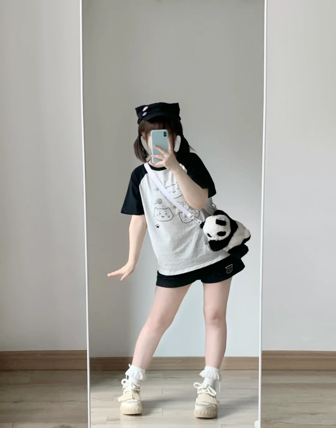 小个子夏天就得学学这种穿搭,显高又清新,感觉自己萌萌哒~熊猫妹的甜妹风真心讨喜
