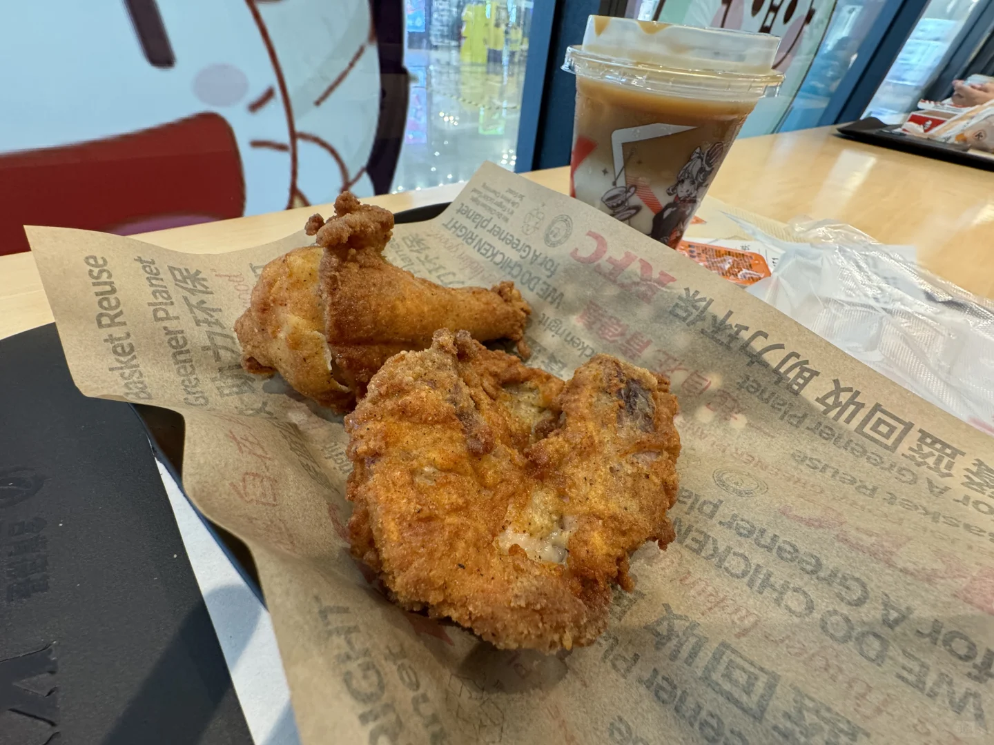 到了工位除了咖啡☕️就是茶🍵没别的~ 今天疯狂星期四给的原味鸡位置很不戳[喝奶茶R]