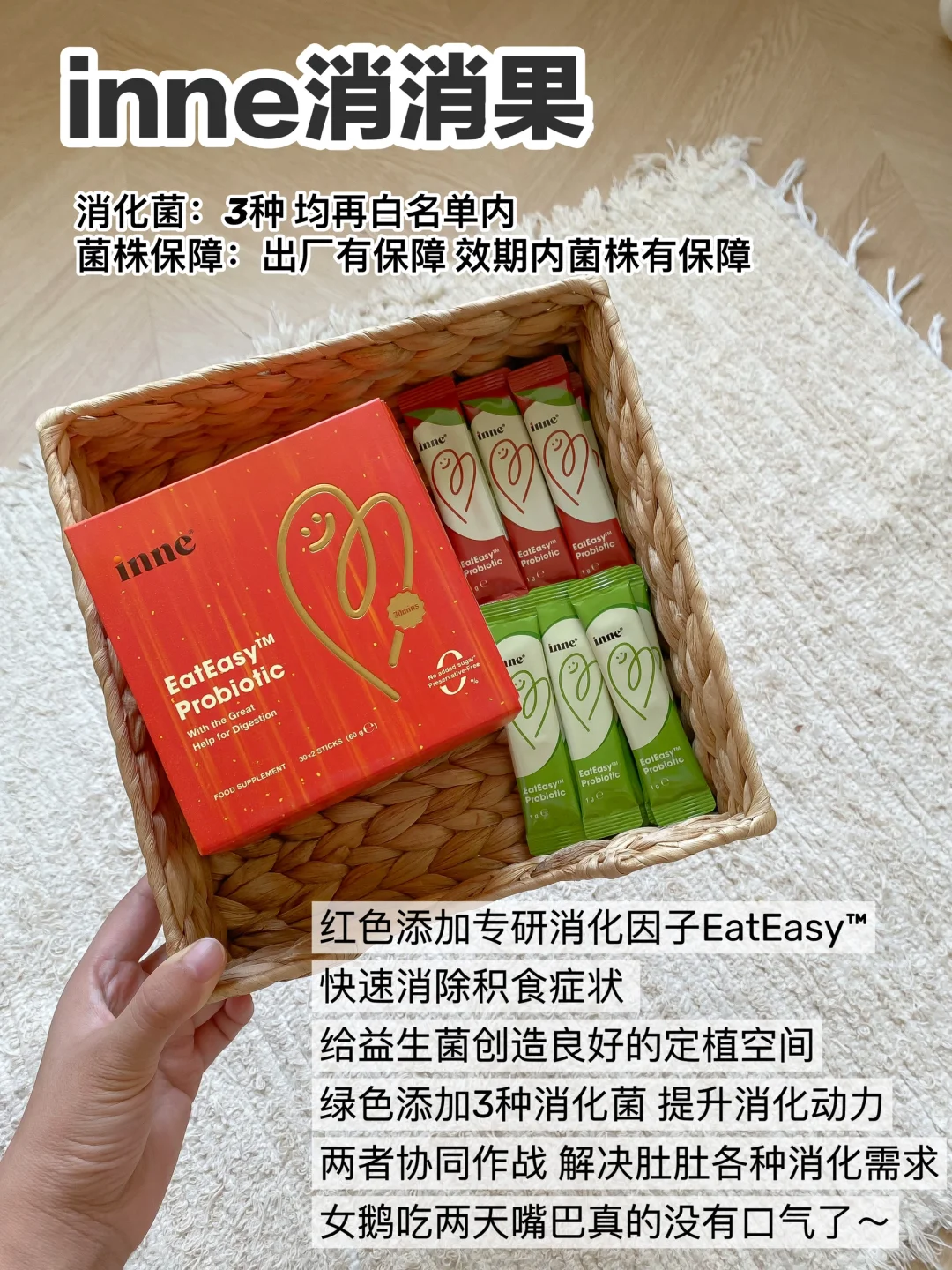 一条双包的结合,红色添加专研消化因子EatEasy™,快速消除积食症状,给益生菌创造良好的定植空间,绿色添加3种消化菌,提升消化动力,两者协同作战,解决肚肚各种消化需求,女鹅吃两天嘴巴真的没有口气了~