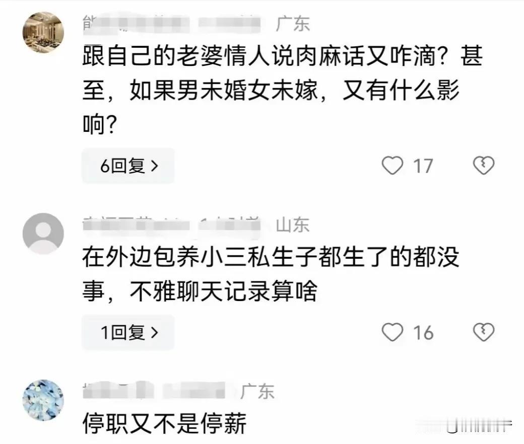 发人深思!关于广西柳州某单位科长不雅聊天事件,网友们吵翻天了。 近日,广西柳州市供销合作联社某公职人员不雅聊天事件,引发网友热议。8月16日,柳州市供销合作联社发布情况通报,确认涉事人员系该社综合业务科科长梁某。 对此,网友们众说纷纭:有网友问道,这些聊天记录是怎么流出来的,个人隐私应该收到法律保护,有网友认为,如果是跟自己的妻子聊天,说点肉麻的话也没关系,还有网友说,在外面包养小三有私生子的都没事,这种不雅聊天记录不算啥。 在我看来,这件事情背后有几个问题值得探讨:1、不雅聊天、不雅视频图片等事件频发,个别人道德败坏、整天不务正业,是否意味着社会风气变了?2、该如何加强对普通人隐私的保护,毕竟很多都是个人私事,只要没有违法犯罪,其他人无权随意泄露他人隐私。3、如何提升道德水准,减少此类事件发生?