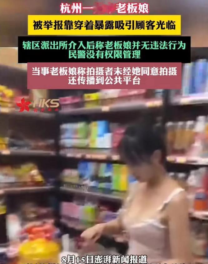 “袒胸露乳!”杭州,超市老板娘为了吸引消费,竟穿着低胸衣揽客,言语间尽显风骚,看得人脸都红了,为此,正义人士将其举报,警方上门处理。 网友:举报者一定是女的,就是妒忌老板娘的美貌! (消息来源:香港卫视 因穿着“清凉”网络发酵后引关注老板娘回应:被人拍视频被欺负) 白皙的皮肤,大胆的穿着,紧身的连衣裙。 这可不是什么内衣广告,而是发生在杭州某超市的真实一幕。 老板娘大方的招揽客人,在他的周围,聚集着一大堆男性消费者,争着抢着要买烟买酒。 “咯咯...别急啊,一个个来” 女人的话,令男人们想入非非,而不远处,却多了几双愤怒的眼睛,自打女老板娘放飞自我后,附近巷口的男人们,便一窝蜂涌来消费,甚至连路过的外卖小哥都忍不住进屋来讨口水喝。 “老板娘,你这么漂亮不怕遭人嫉妒啊” 就在大伙打趣时,突然两名警察走了进来,拿出证明便强行驱散了围观人群。 “哎,你们这是做什么,我合法经营啊” 事后,老板娘才得知,自己被举报了,而罪魁祸首正是她那低的令人发指的裙子,还有暧昧的语气,让人想入非非的话语。 “你知道文明经商吗?你这么做已经构成低俗营销了!” 最终,在经过警方的劝诫后,老板娘承认了错误,并表示今后会注意自己的衣着和打扮。 然而,就在众人以为此事告一段落时,意想不到的画面出现了。 有顾客将女人“清凉揽客”的镜头传到了网上,霎那间,火遍各大短视频平台! 一时间,超市门口出现了很多陌生面孔,有人为了蹭热度,拿着手机不断对着她拍,还有的甚至比下流动作,出言不逊。 为此,店内的生意一天不如一天,几乎到了关张的边缘... 与此同时,网上关于老板娘的评论也呈现出两极分化。 赞成者认为,穿什么,怎么打扮是人家的权利,再者说裙子本来就是短款,能买到就说明是合法的,不能因为她长得性感、举止大方一些就往视欺负人家。 对此某网友直言不讳道:“比起那些擦边女主播,女店主起码自食其力,靠劳动赚钱,为啥瑜伽裤不禁,偏偏要针对一条裙子呢?” 而反对者则表示,女店主光天化日之下穿着暴露,和男人们暧昧、调情,简直是有伤风化,小孩子看到一定会学坏,此种行为一旦扩散,将会引来万千效仿者,届时后果不堪设想!所以,应当及时刹住,予以取缔。 对此,你怎么看,欢迎在评论区留言、讨论。