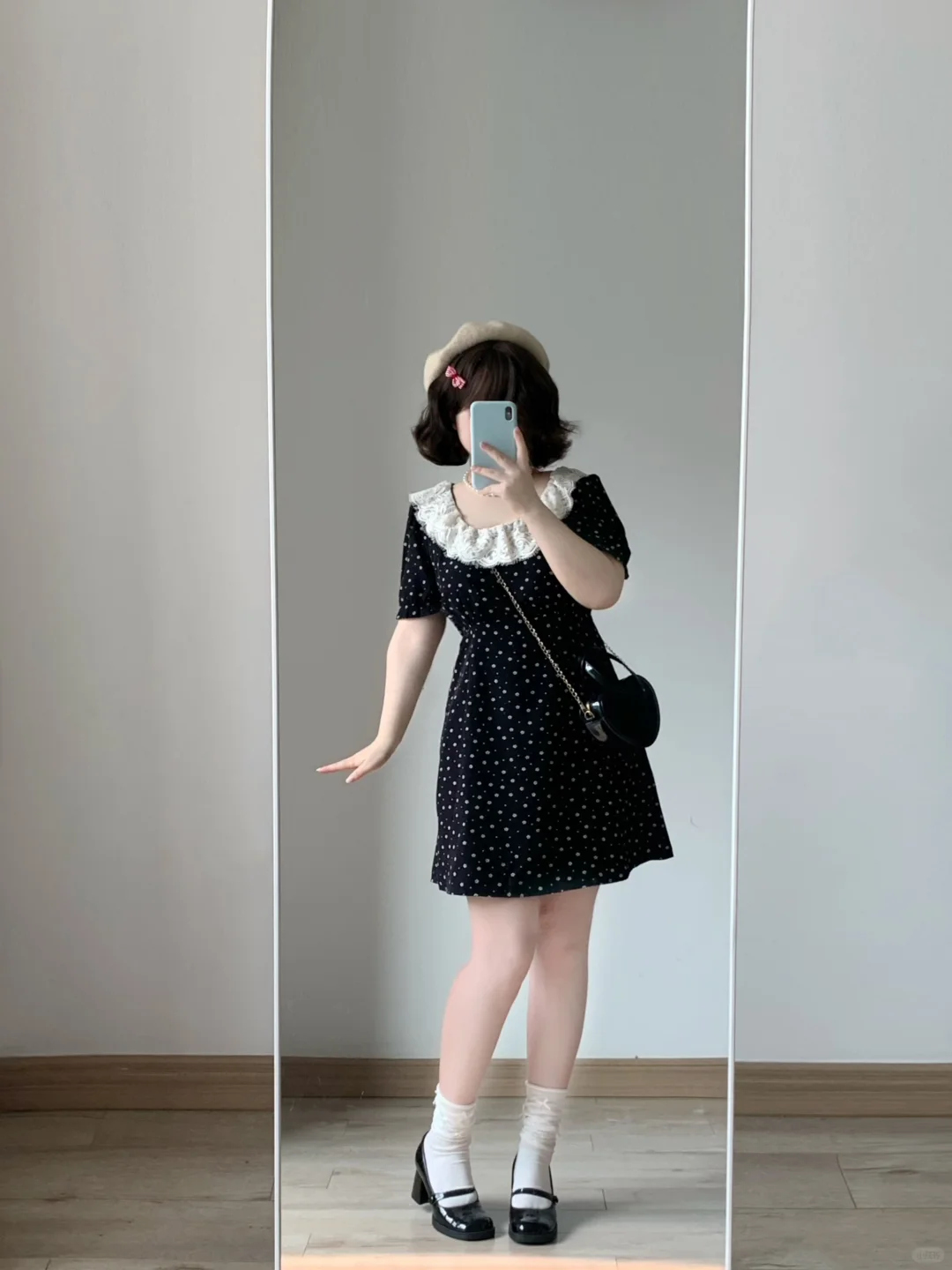 微胖姐妹们,get√显瘦秘籍!黑色连衣裙真是藏肉神器,穿起来立马显瘦十斤,自信走起来~