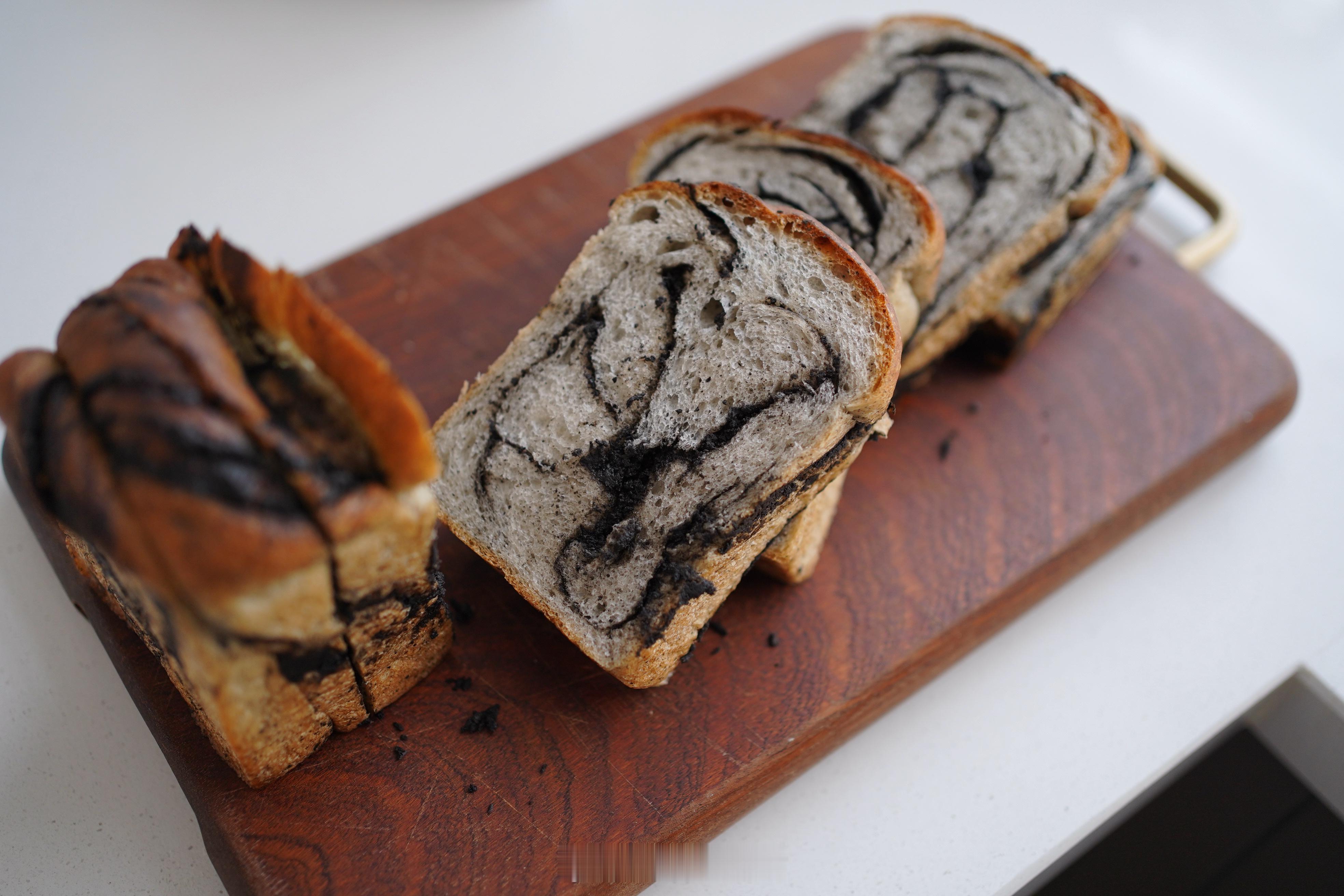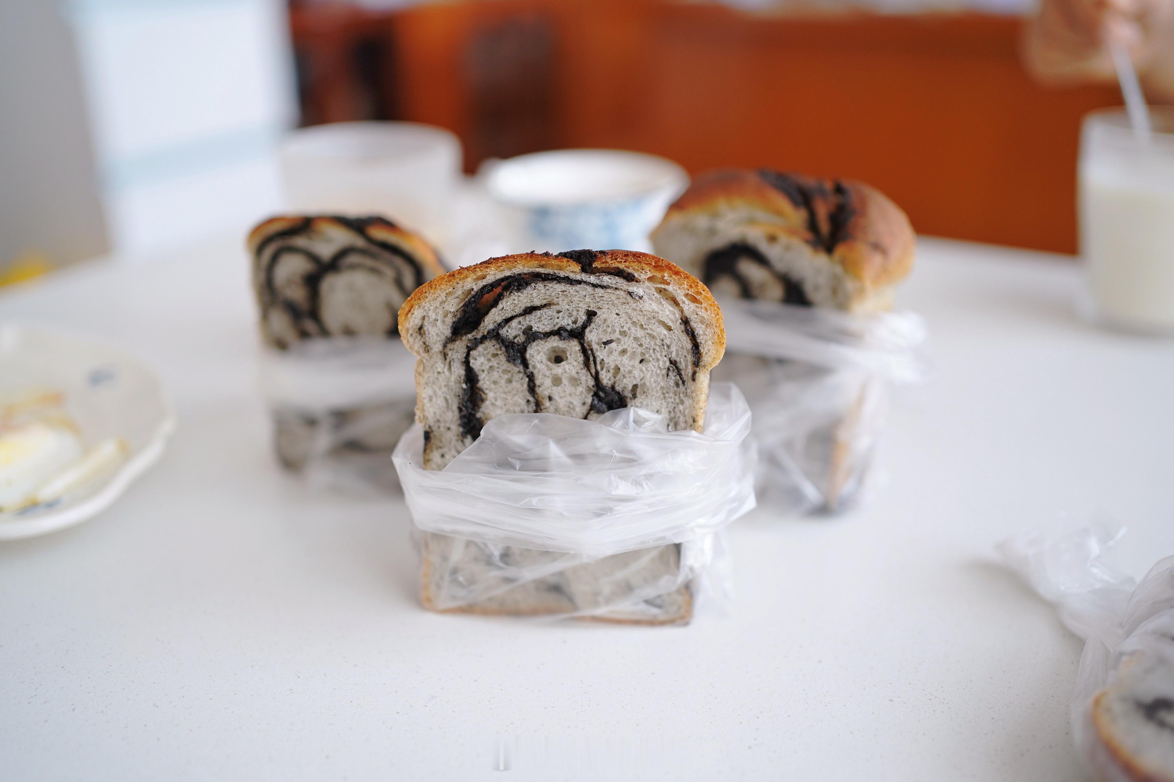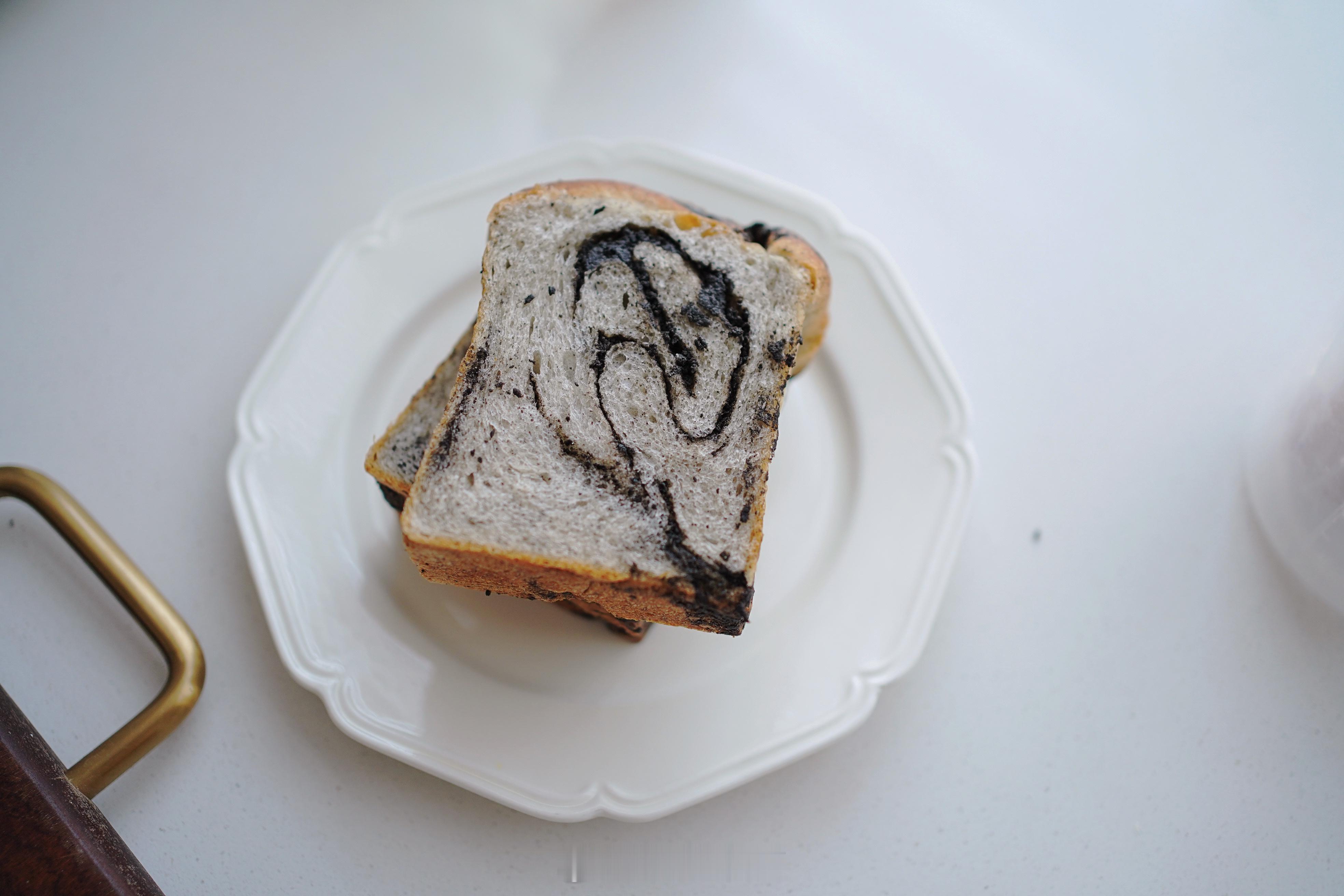 试品中的黑芝麻吐司,这一回依然是椰子油版的,后面我会试黄油版的。